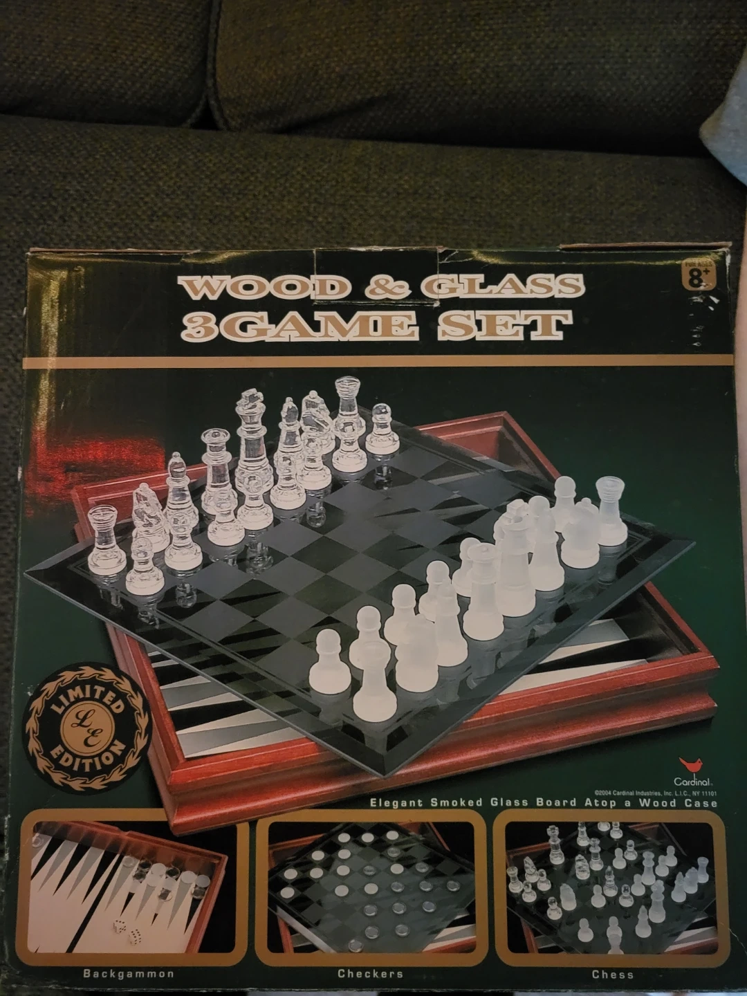 Wood & Glass 3 Game Set + Scrabble + Jenga + Big Six