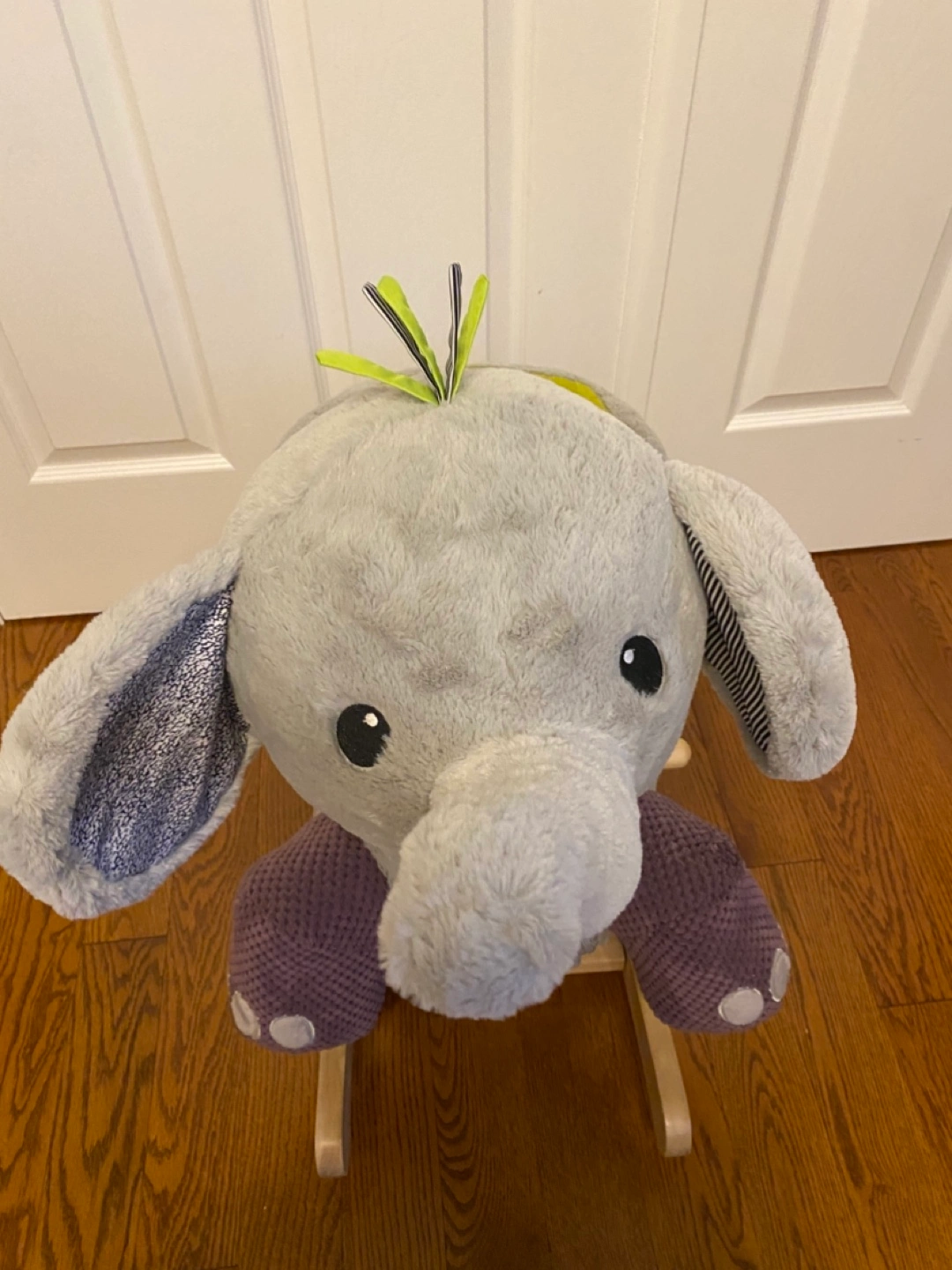 Sounds from the Elephant trunk and ears will catch your child's attention, developing their sense of hearing and the colours and patterns will stimulate their eyes. A fun part is that you can also remove the head and start a puppet show. Plays music with a push of a button in back foot.