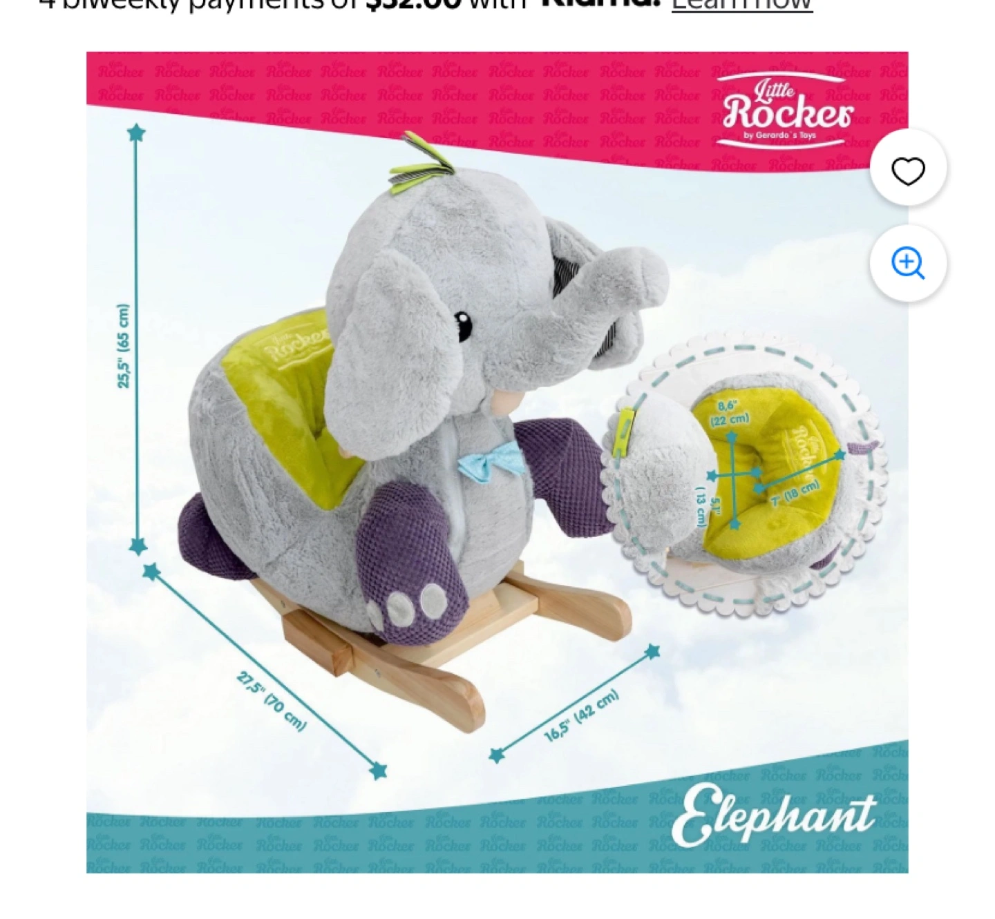 Gerardo’s Toys Little Rocker Plush Elephant Wooden Rocking Chair