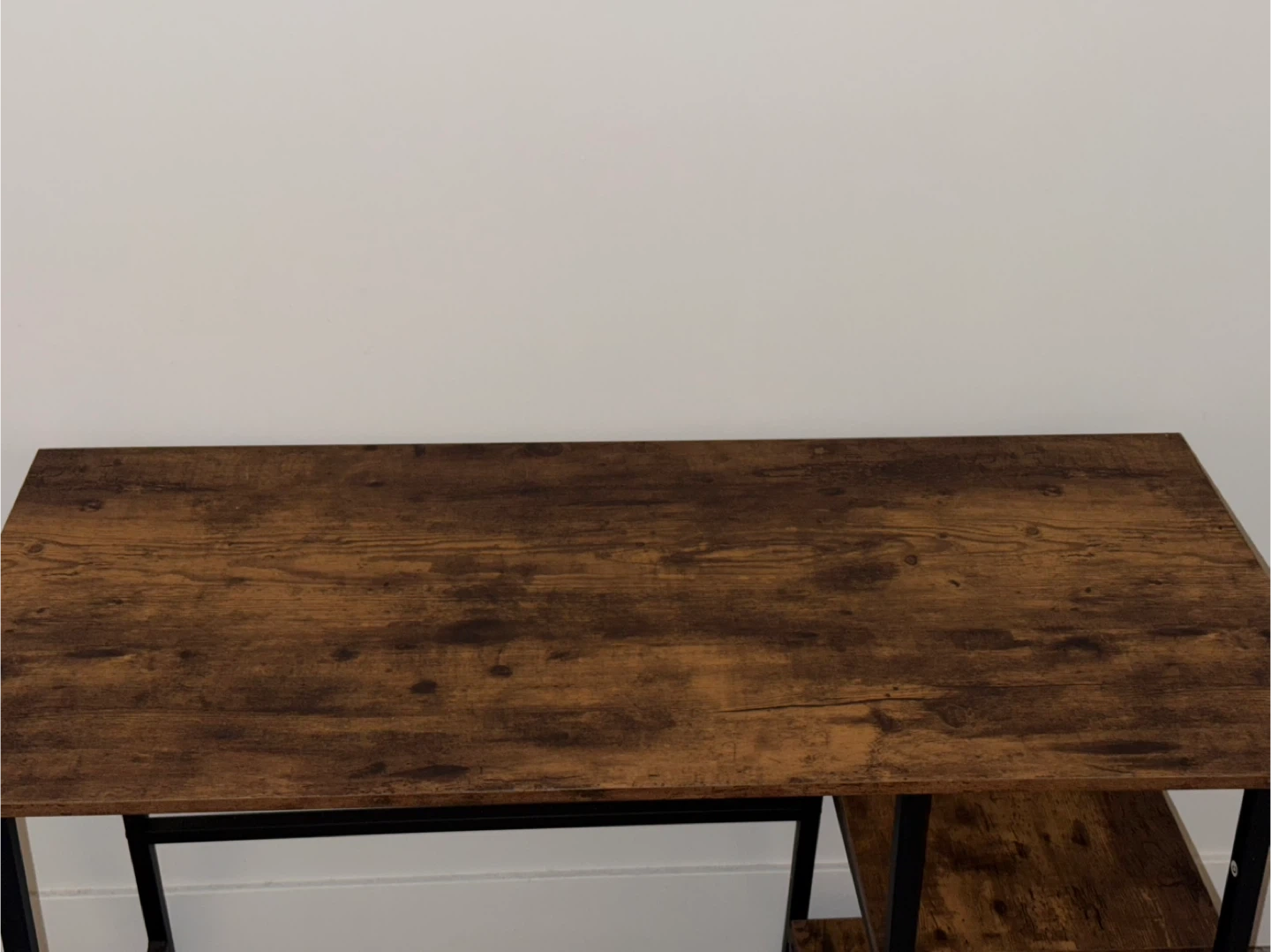 Looking to sell this desk, it has a brown top and black frame. It also features shelves on the side for extra storage! It's perfect for a home office or study space