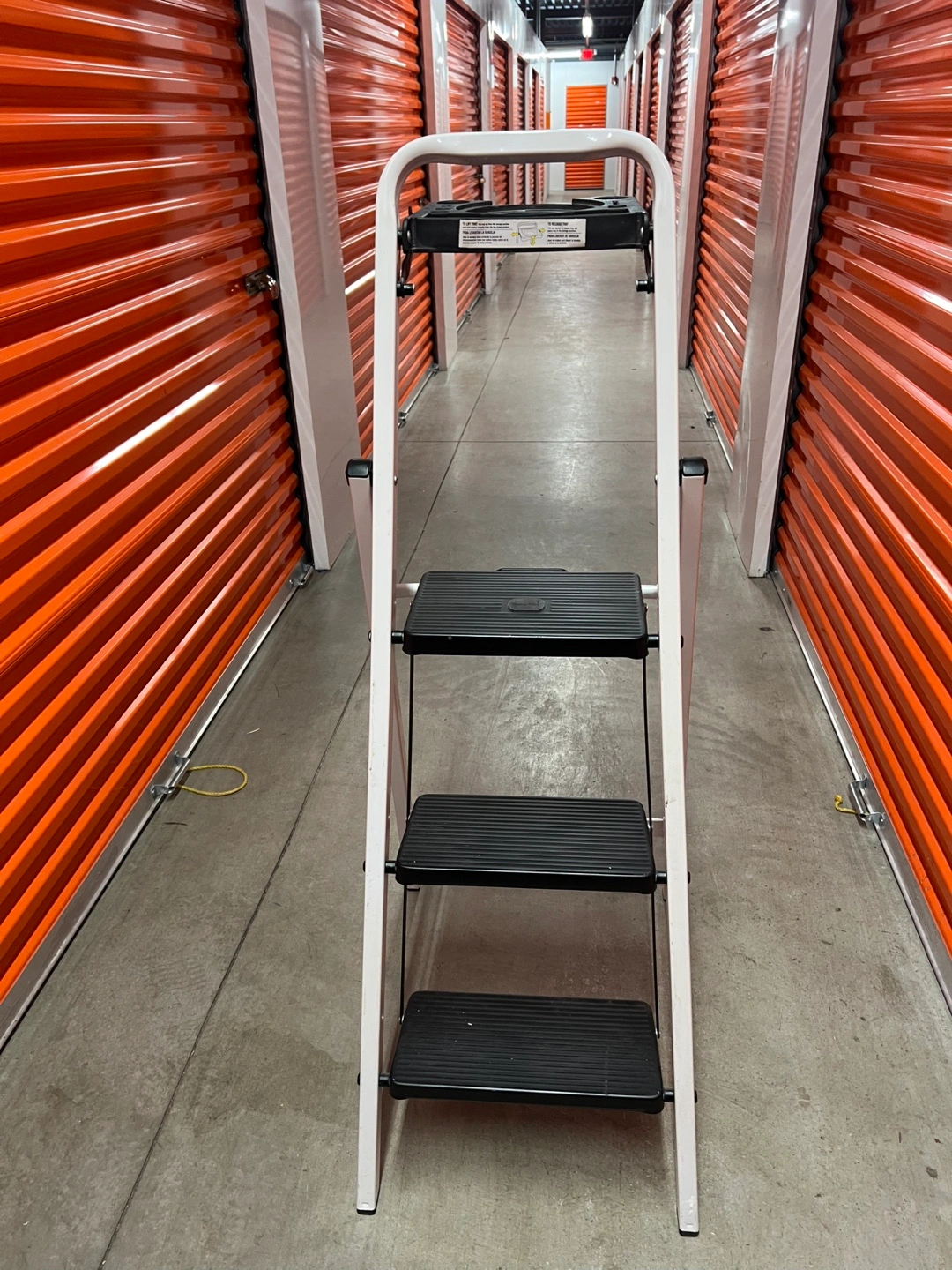 Selling a 3-step ladder in good condition. It features a white frame with black steps. Perfect for reaching those high shelves or tackling household projects!