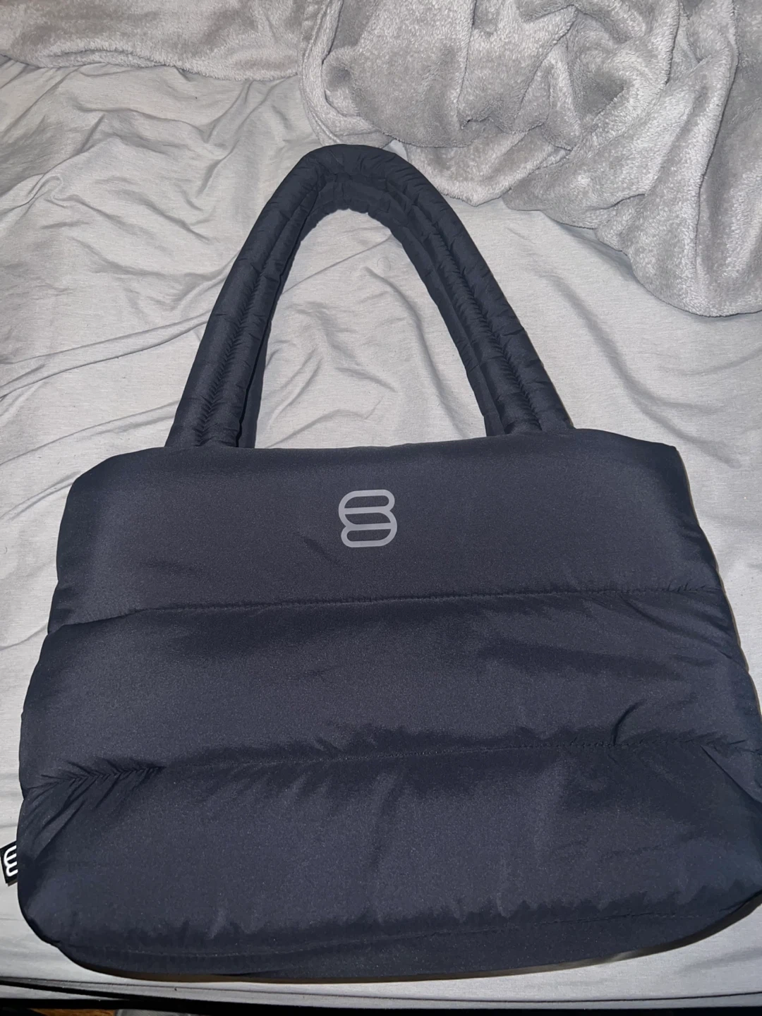 Selling an Aritzia Super Puff tote bag in black! It's in great condition and ready for a new owner. This stylish and practical tote is perfect for everyday use, with its lightweight and portable design. It's made of high-quality material and features a spacious interior. Feel free to reach out if you're interested