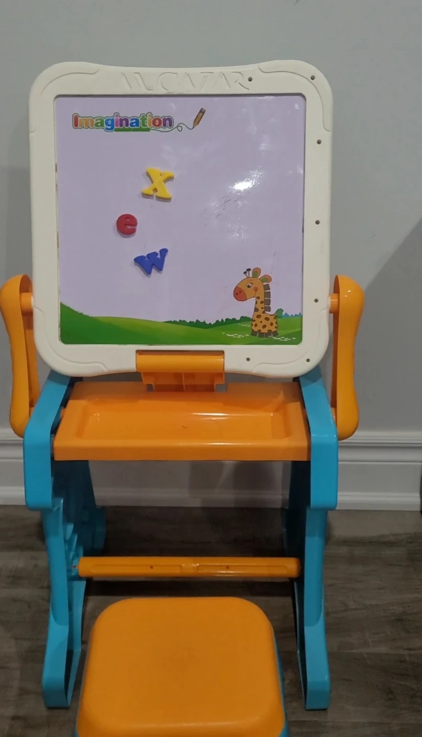 One side works as a LEGO & building block surface, the other side is a magnetic whiteboard that also works as an easel (clip paper on top).