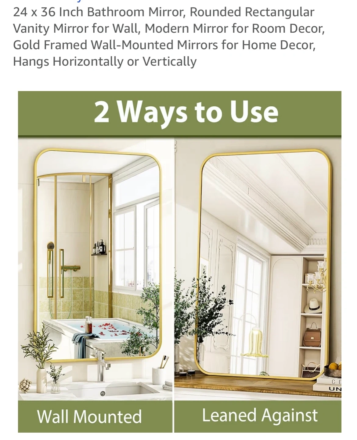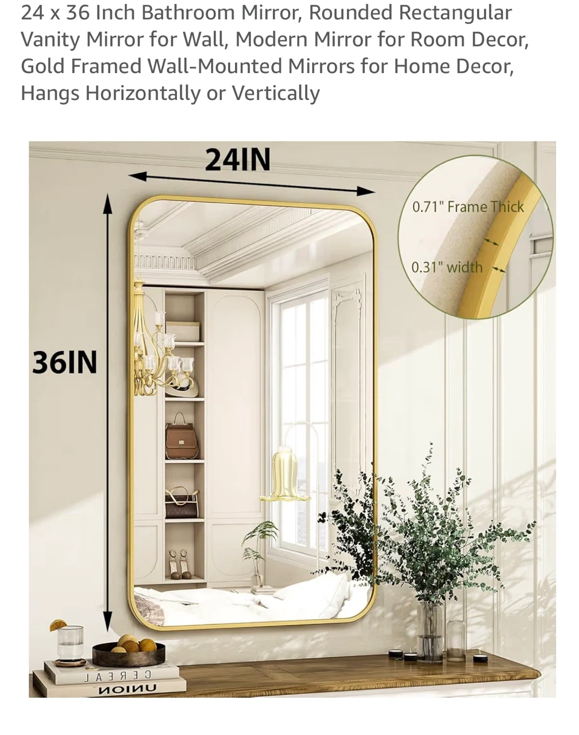 TETOTE 24x36 Inch Bathroom Mirror - Gold Frame