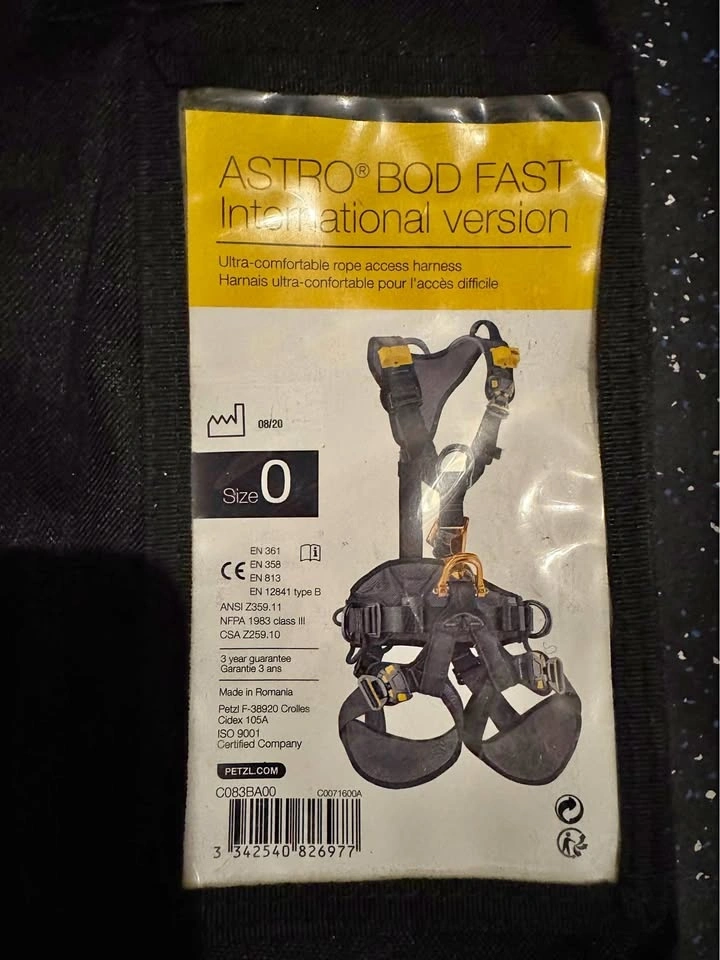 Brand new Petzl Astro Bod Fast harness. Size 0. Never been used. I bought it for High Angle Rescue job but things changed and I never ended up using it.