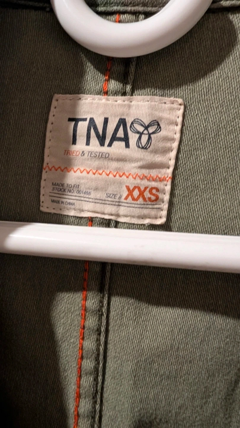 Selling a TNA camo jacket in size XXS. It's in great condition and ready for a new owner! The camo pattern is perfect for adding a bit of edge to your wardrobe.