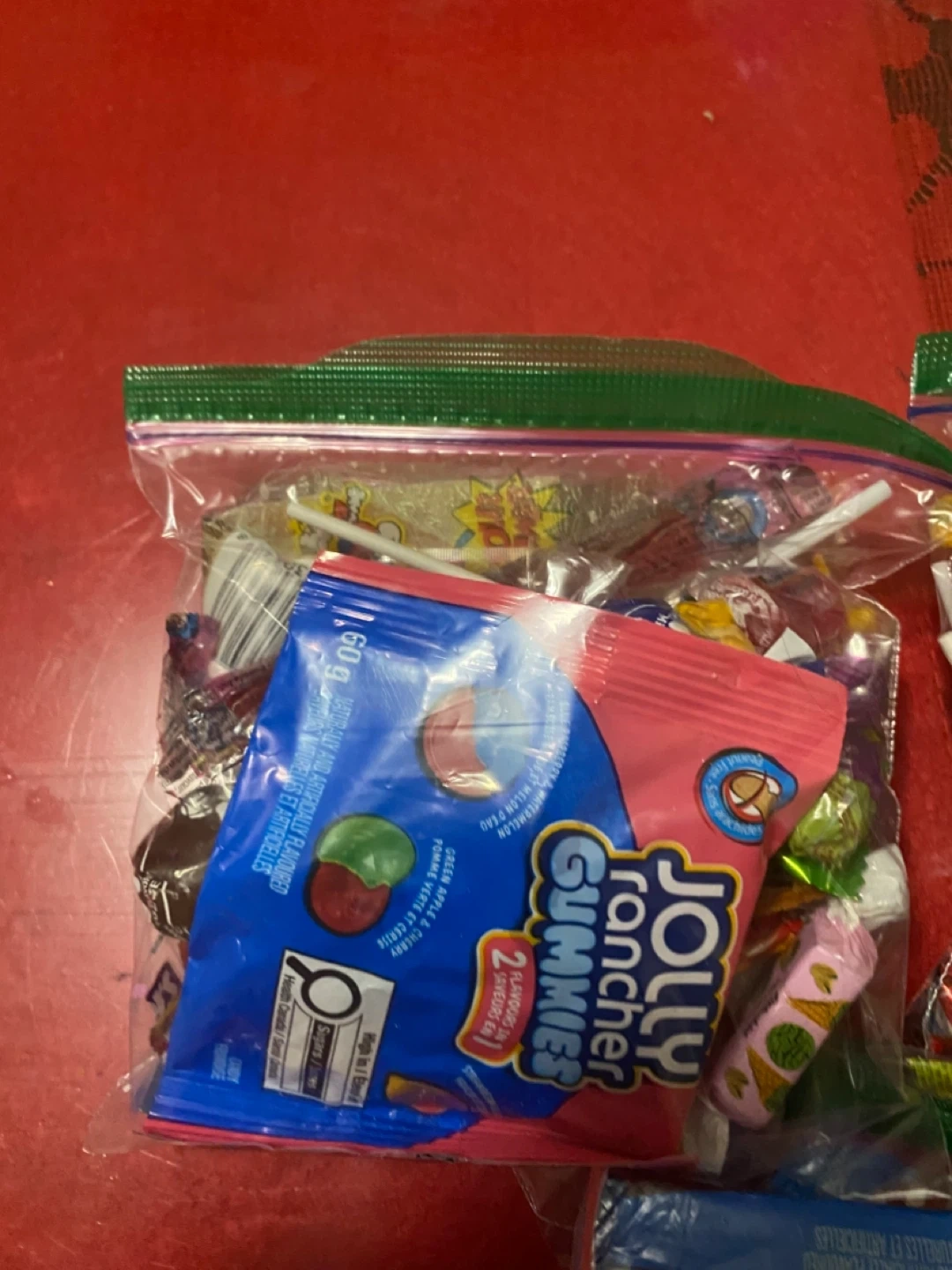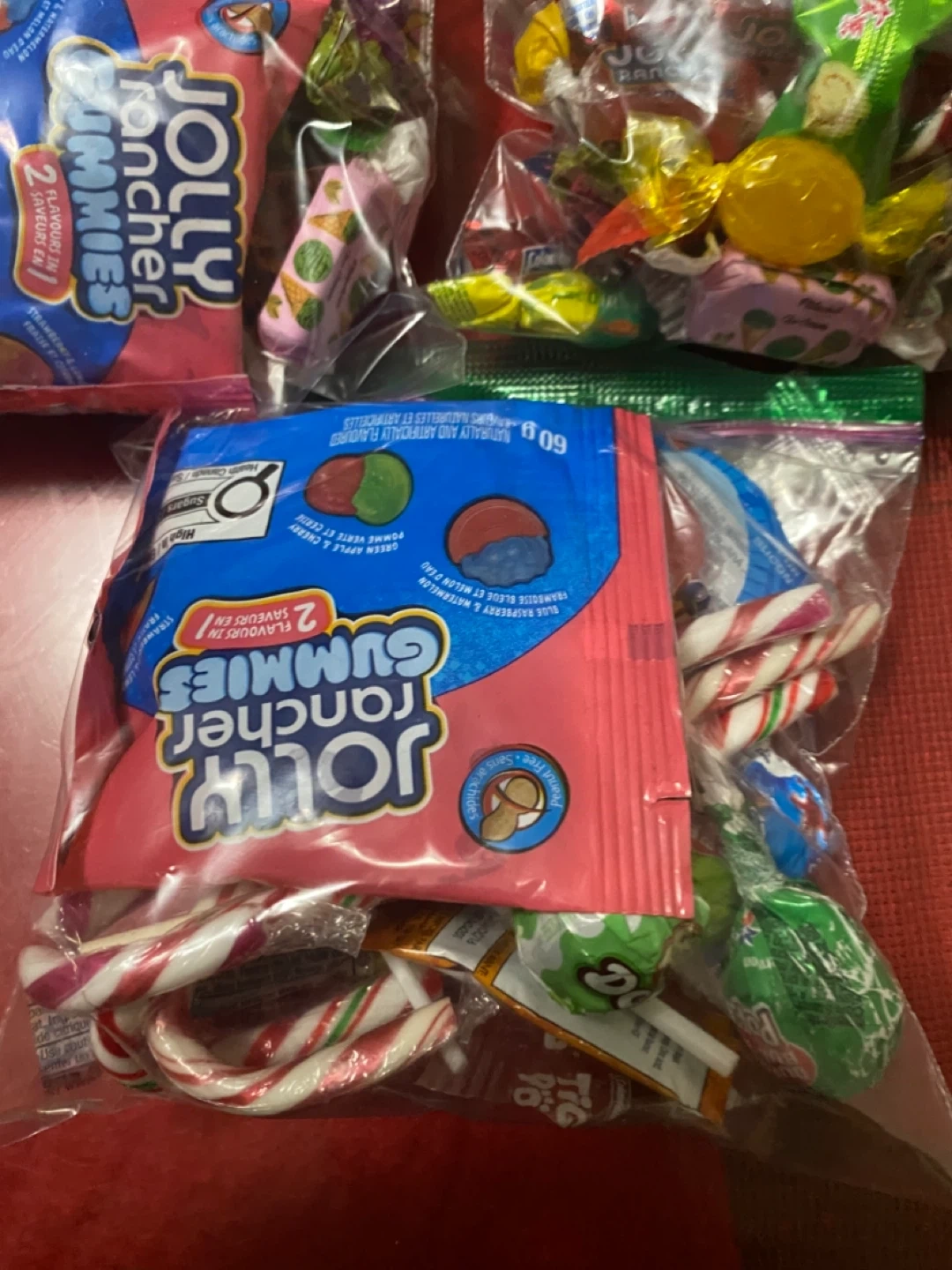 I have bags of mixed candy available! Each bag contains a variety of treats, including Jolly Rancher gummies and other assorted candies. These are from the last holloween and Christmas holidays