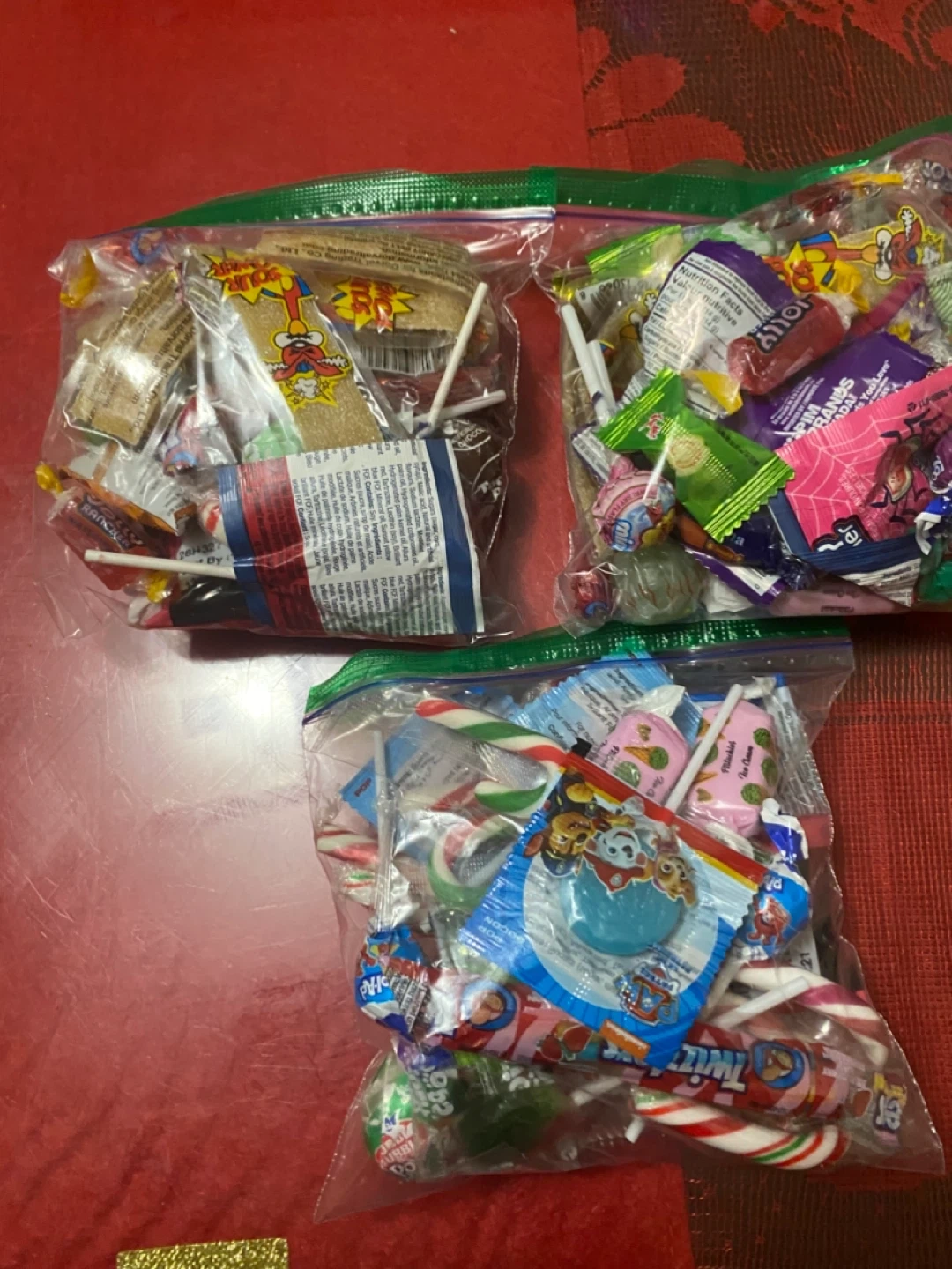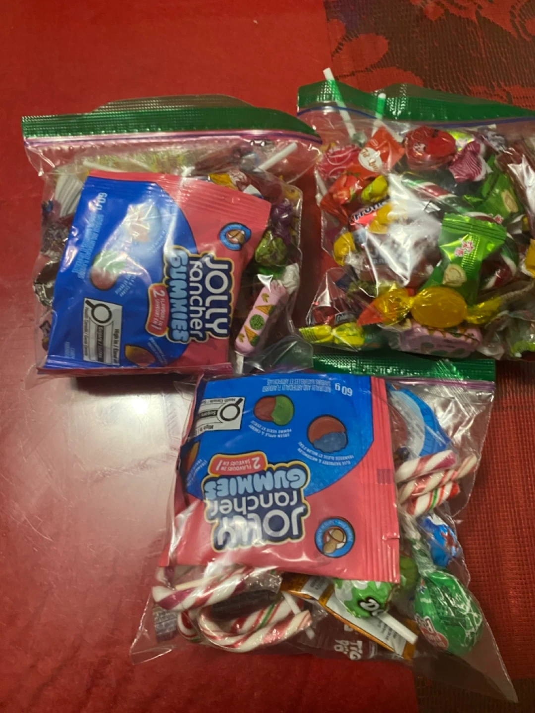 I have bags of mixed candy available! Each bag contains a variety of treats, including Jolly Rancher gummies and other assorted candies. These are from the last holloween and Christmas holidays