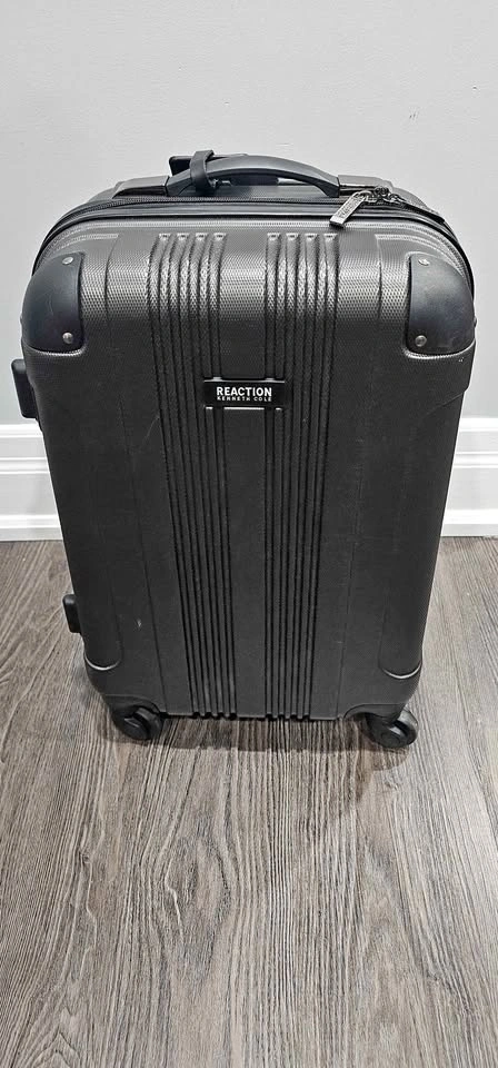 Get ready to travel in style with this Kenneth Cole Reaction Renegade carry-on luggage. This used, but still reliable, suitcase features a hard shell, spinner wheels, and a telescoping handle.