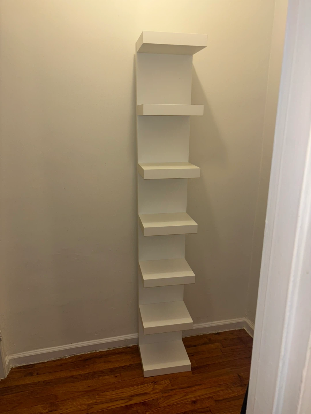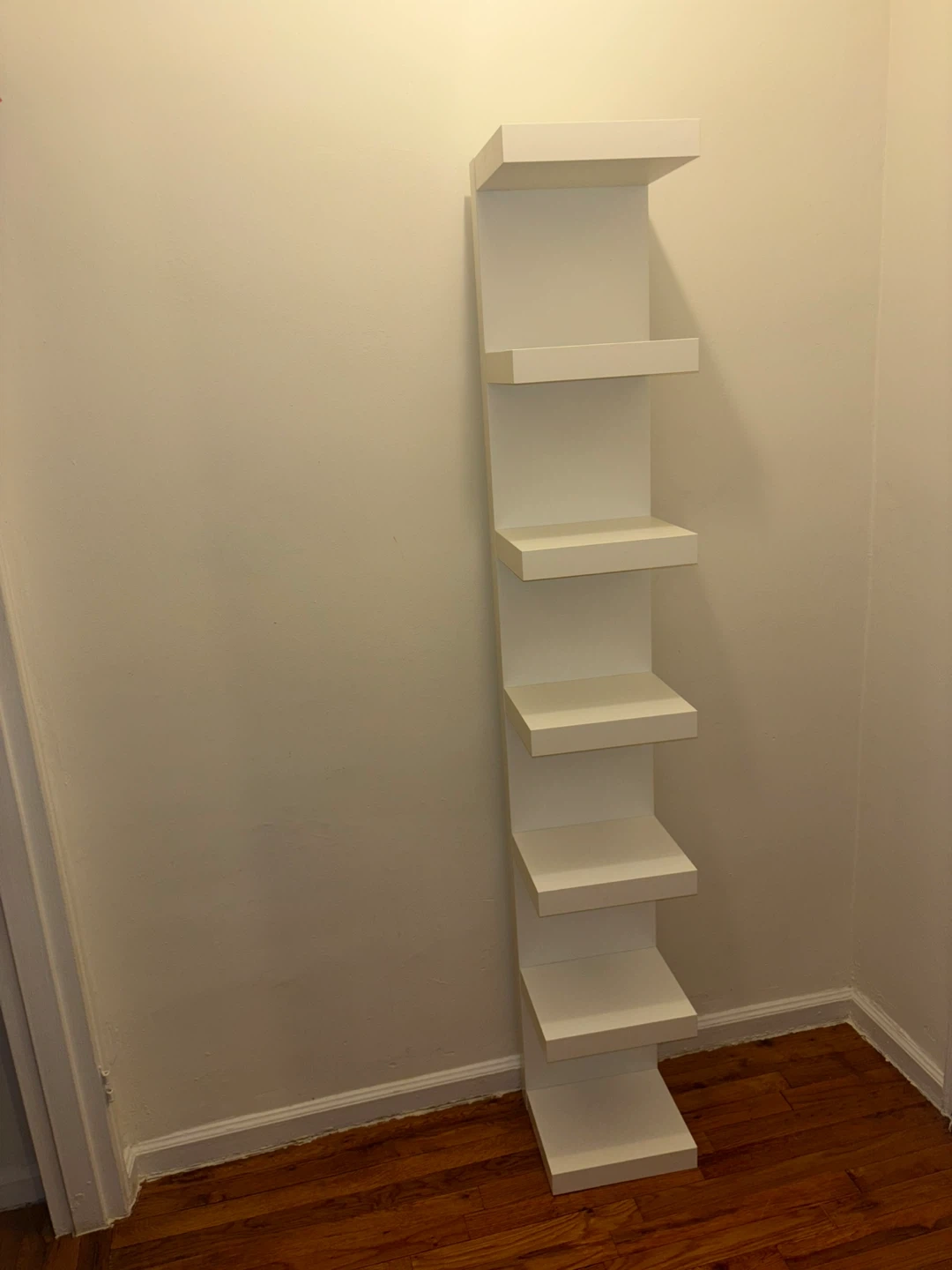 Selling a versatile white shelf that can be used as a corner shelf or wall shelf. It's in great condition and ready to add some style and storage to your space! Pickup only