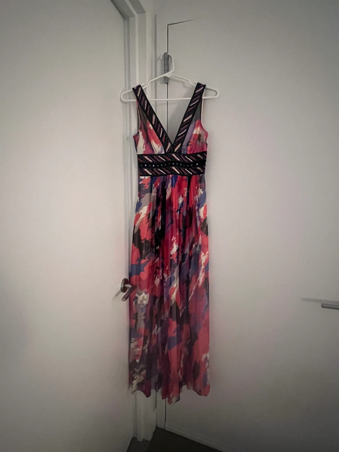 Selling a BCBGMAXAZRIA dress with a beautiful multicolor design. It's in great condition and ready for a new owner!