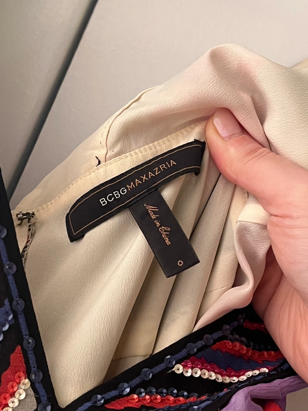 Selling a BCBGMAXAZRIA dress with a beautiful multicolor design. It's in great condition and ready for a new owner!