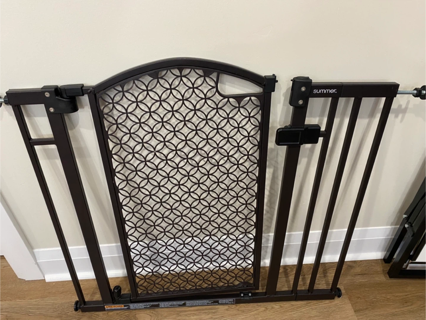 Selling a Summer Infant decorative wood and metal gate. It's in great condition and ready to keep your little one safe! The gate features a stylish design that will complement your home decor. It’s a pressure gate. 34” wide with an adjust of an extra 2-3 inches per side.