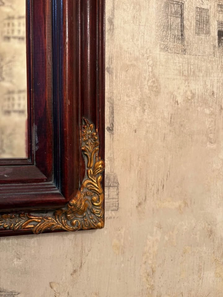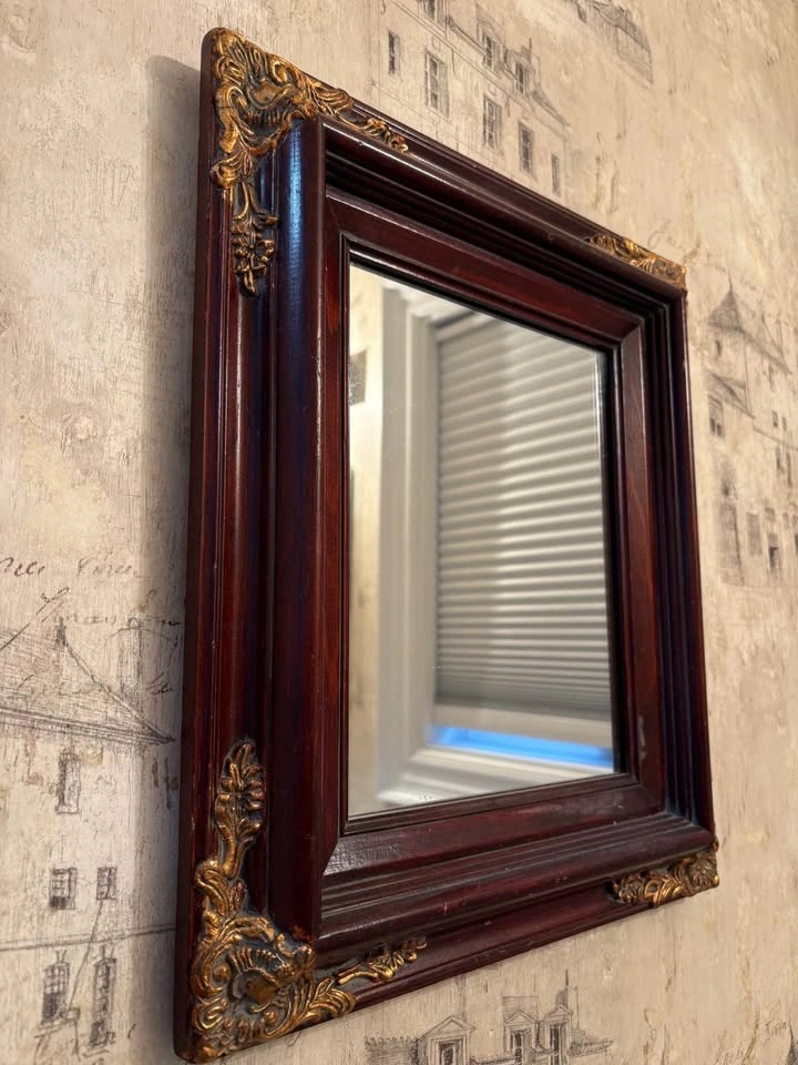 Vintage style mirror with gold detailing on corners, great little decor piece.