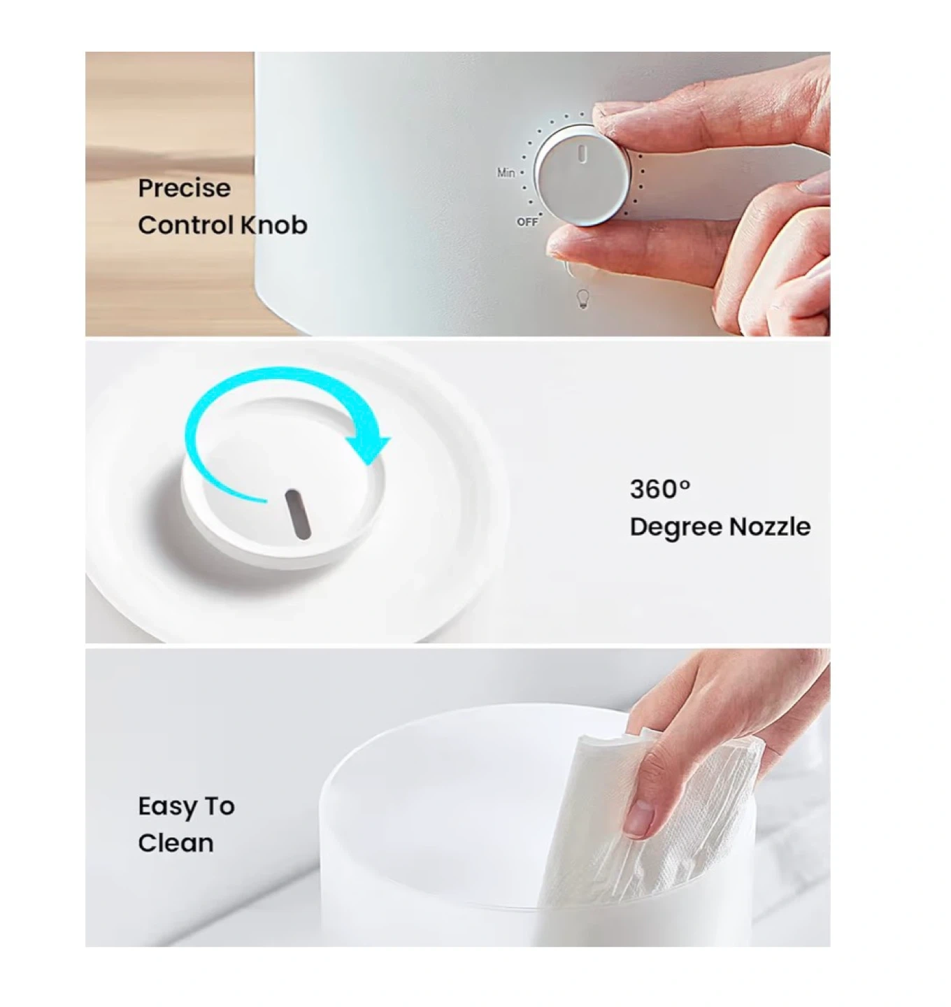 Easy to refill and clean, quiet operation, and can be used with essential oils.
