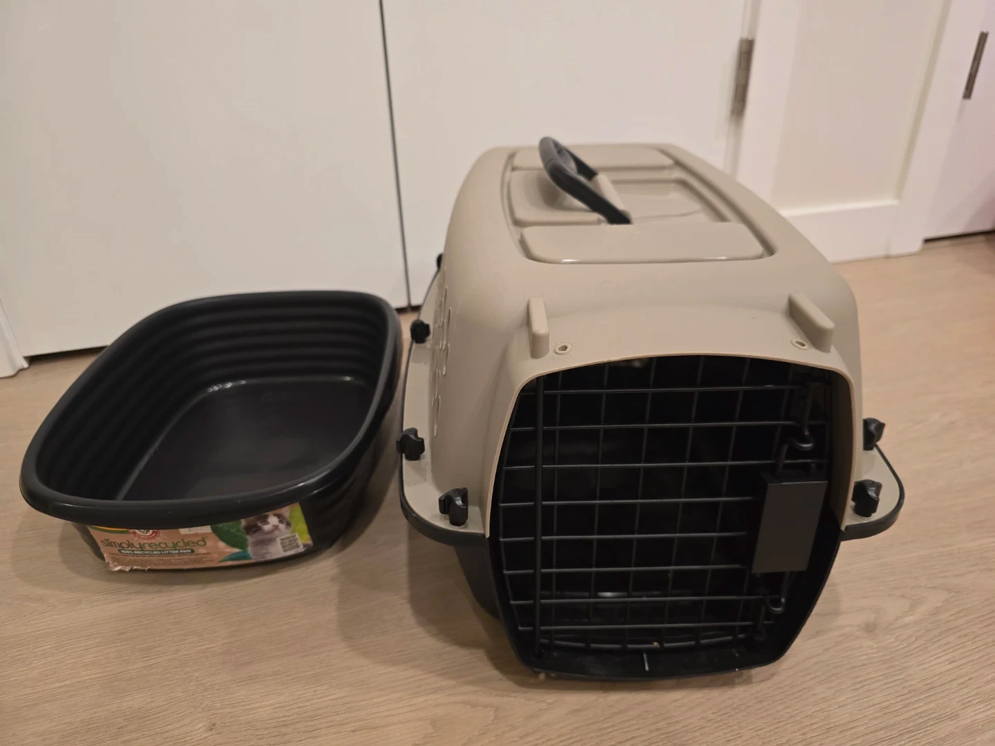 Selling a pet carrier along with a litter pan. Both are in great condition used only once (bought different for my pet) and ready for your furry friend's next adventure or for keeping their space tidy!