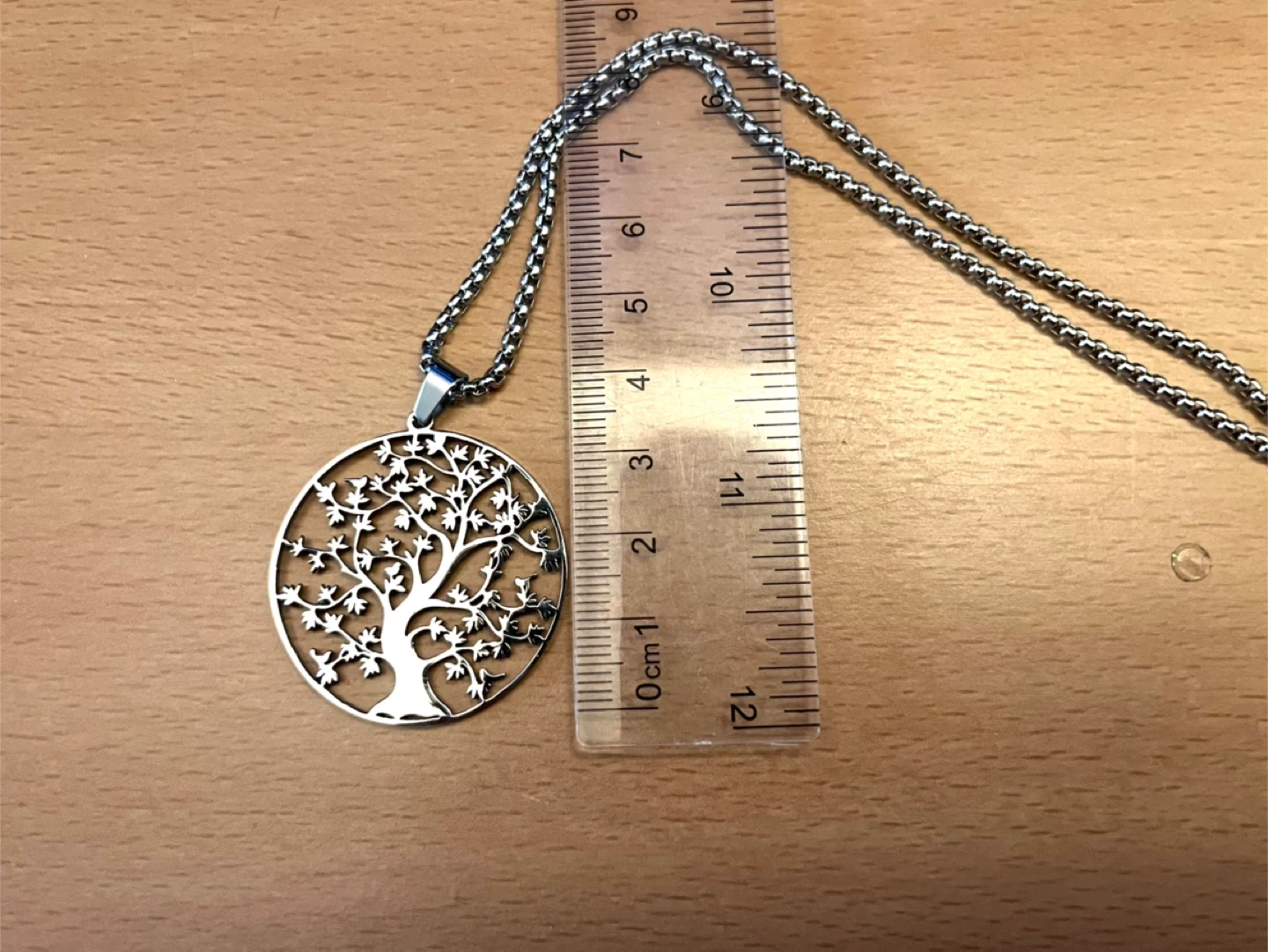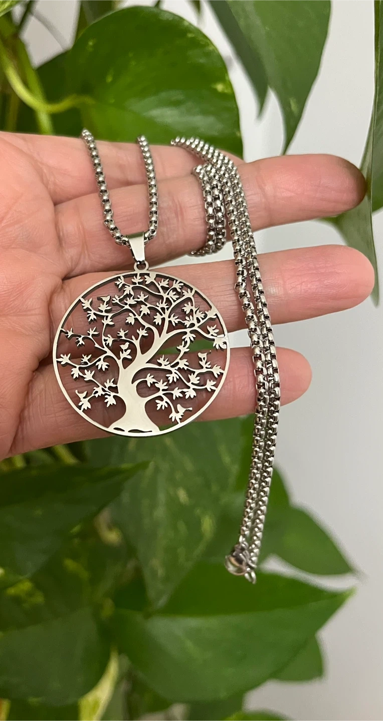 Selling a lovely silver-tone necklace featuring a Tree of Life pendant. The pendant measures approximately 3.5cm in diameter, and the chain is about 29cm long.