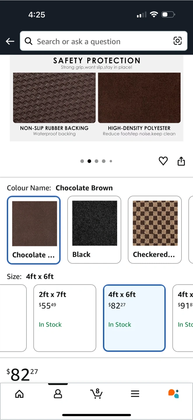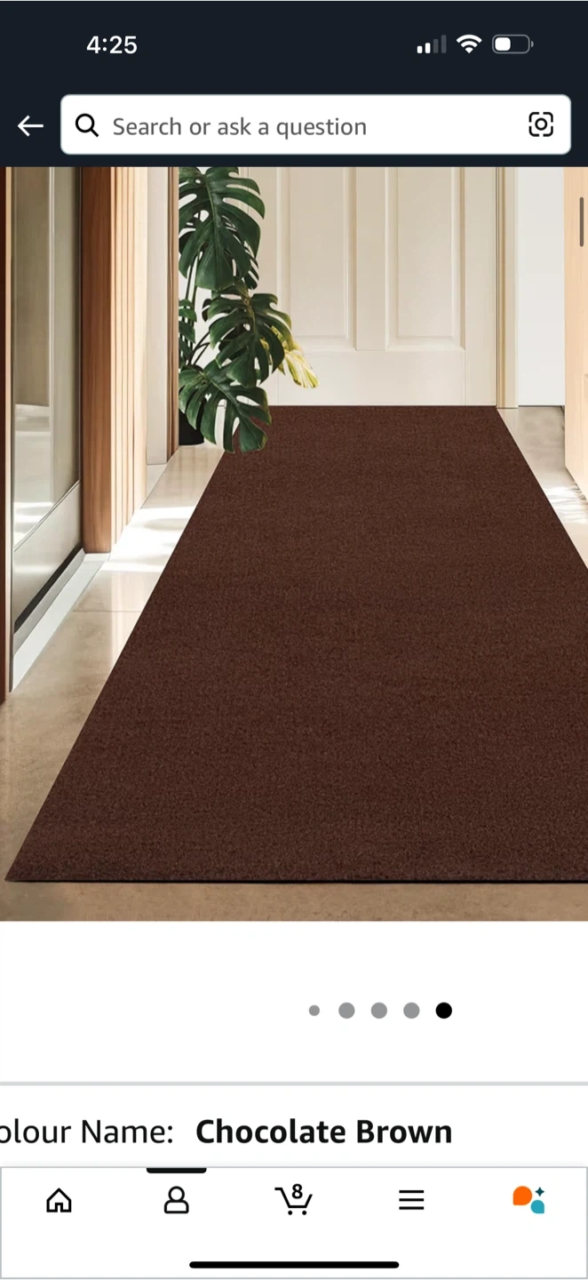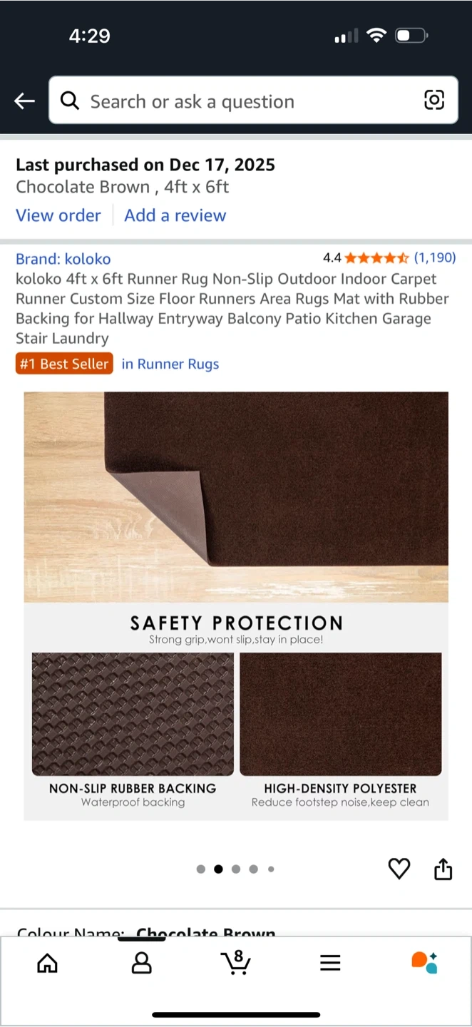 Looking to add a touch of warmth to your home? I'm selling a Koloko rug in chocolate brown! It measures 4ft x 6ft, perfect for hallways, entryways, or even the kitchen. It features a non-slip rubber backing and is made of high-density polyester for durability and easy cleaning