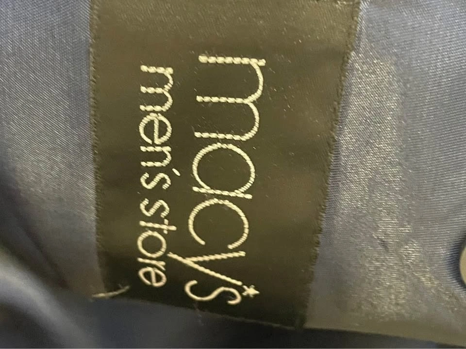 I have a navy blue suit that is Marc Jacobs brand from Macy’s. It is not brand new, but still in very good condition, it’s been just hanging in my closet for a while now, so would probably need dry cleaned. Let me know if you have any questions.