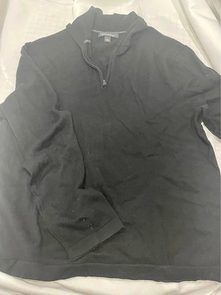 I have a black sweater from Banana Republic, it is men’s size large and a quarter zip at the top.