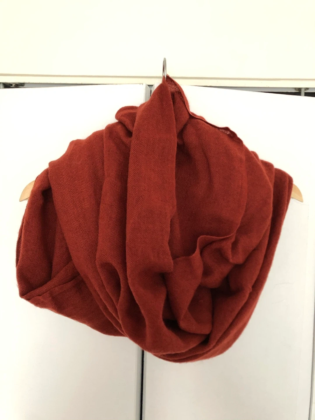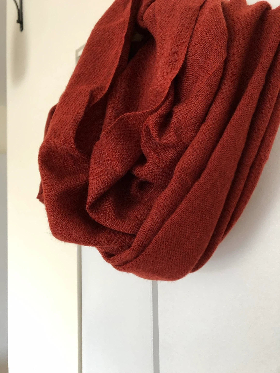 Cozy red infinity scarf! It's super soft and warm, perfect for chilly days. The color is a beautiful, rich red that would complement any outfit. It's in great condition and ready to keep you snug!