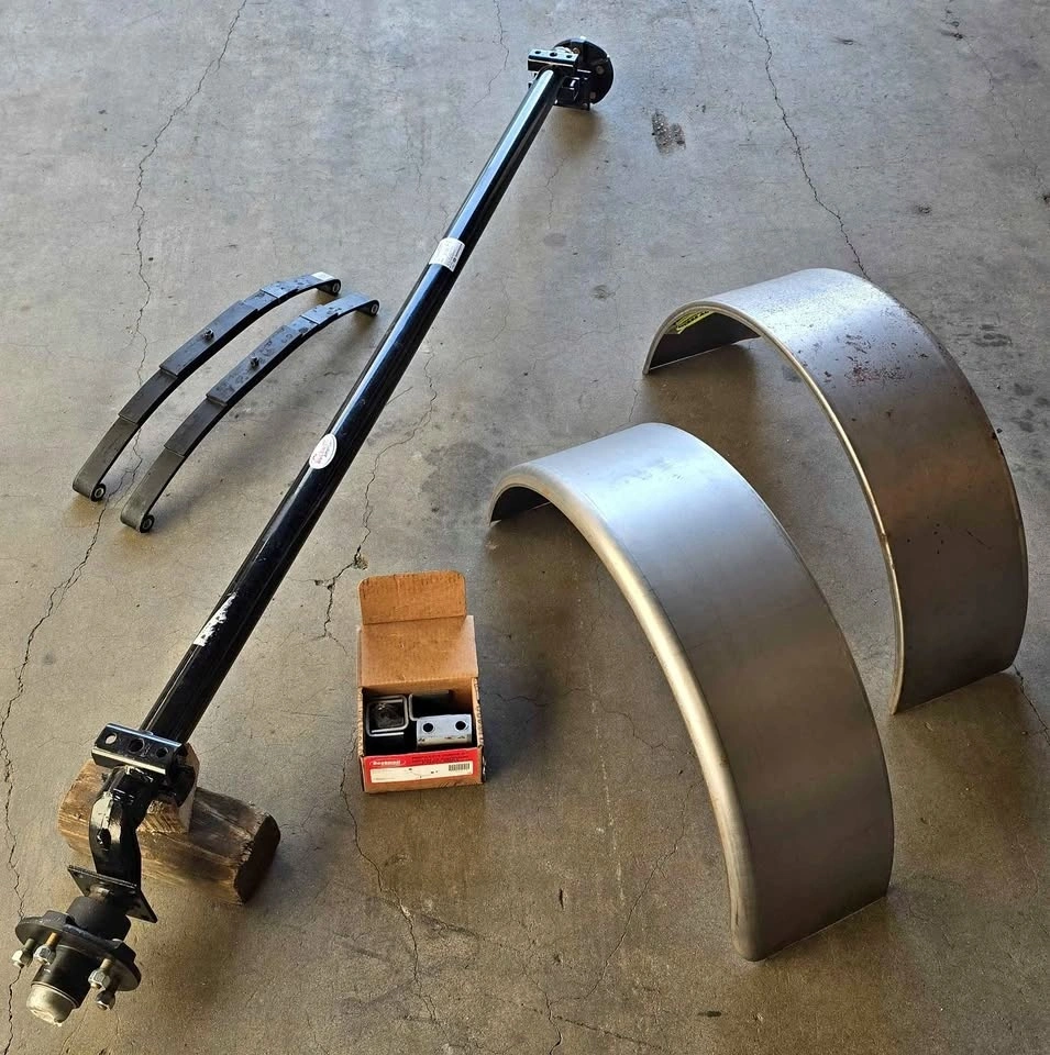 Hello! If you see this ad, it means it's still available. This was a project I wasn’t able to finish. My plans have changed, so I need to focus on other things now. The shaft is brand new and has never been used for its intended purpose — it has only been sitting on a shelf in my workshop for a few years. All parts are brand new. If you buy the same set from Princess Auto, it will cost you significantly more for the exact same assembly. Perfect for anyone building or repairing a small trailer. Pick up Broadway St. Port Coquitlam
