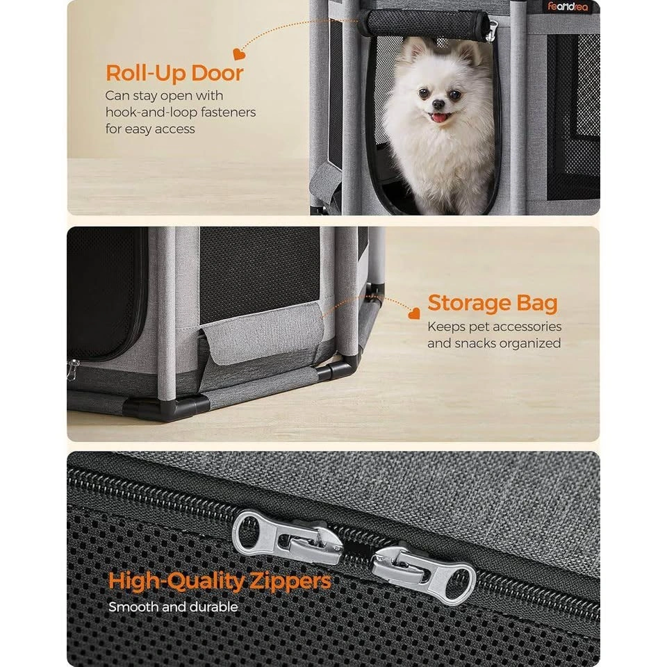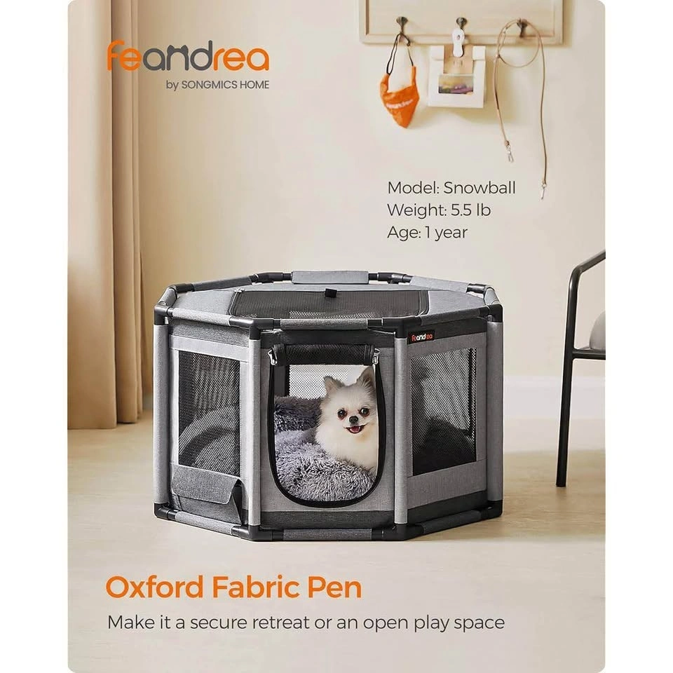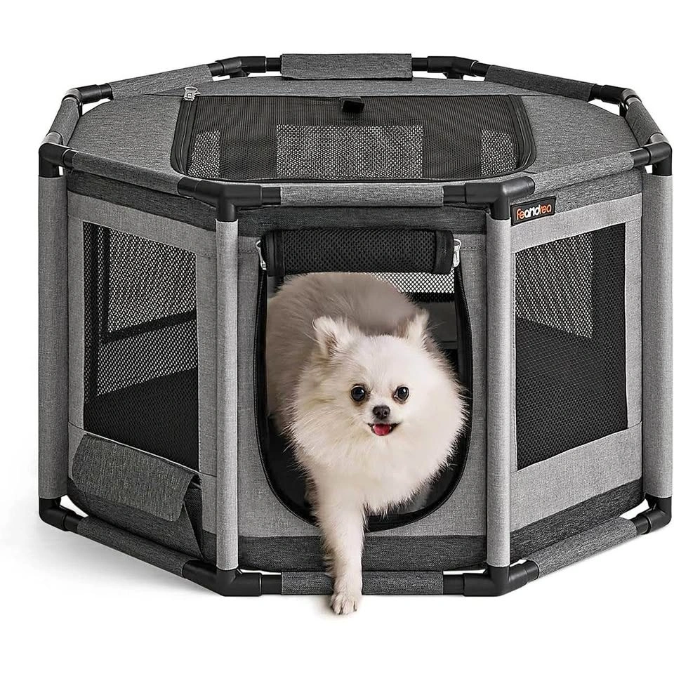 Keep your dog safe and comfortable at home or outdoors with this Feandrea portable dog playpen. Lightweight yet sturdy, it’s perfect for puppies, small dogs, travel, camping, or indoor use. The breathable mesh provides great airflow and visibility, while the octagon shape gives your pet more space to move around.