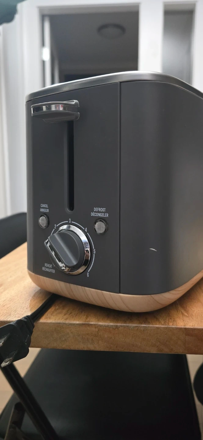 Selling a Cuisinart 2-slice toaster! It features a sleek grey and wood design that would look great in any kitchen. It has settings for defrost, reheat, and cancel. Perfect for your morning toast! I used this only 3~4times.