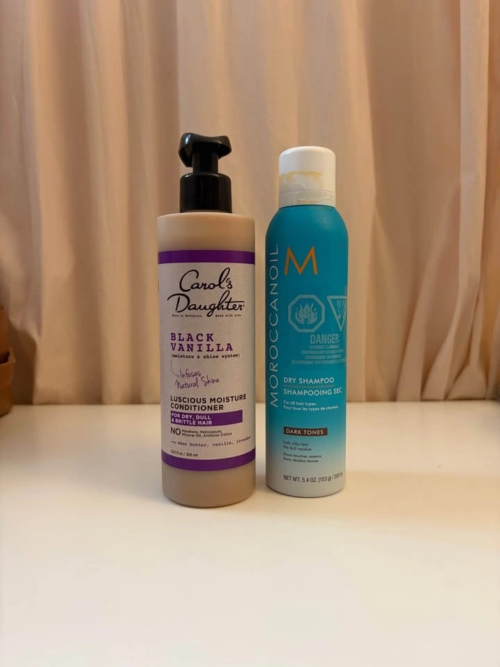 shampoo/conditioner: Carol’s daughter black vanilla conditioner and Moroccanoil 205ml dry shampoo (used both once) for $30