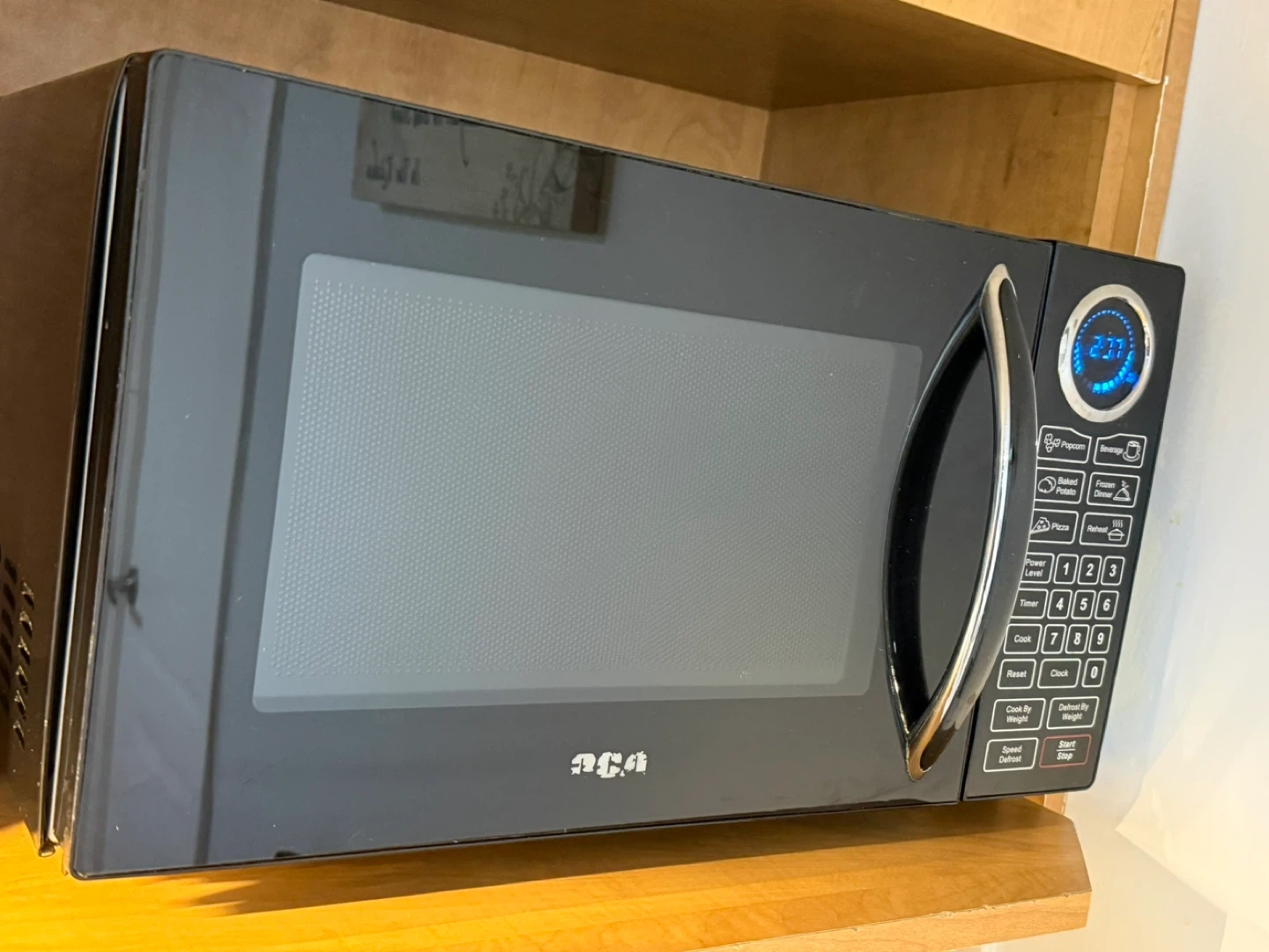 Selling an microwave in good condition. It features multiple preset cooking options like popcorn, beverage, baked potato, pizza, and more. It also has defrost and timer functions!
