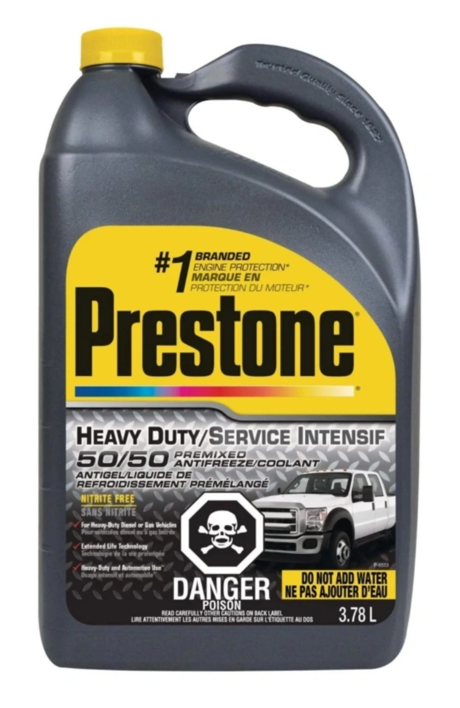 Prestone 50/50 premixed car antifreeze/coolant. Nitrite free. 3.78 L. Do not add water.