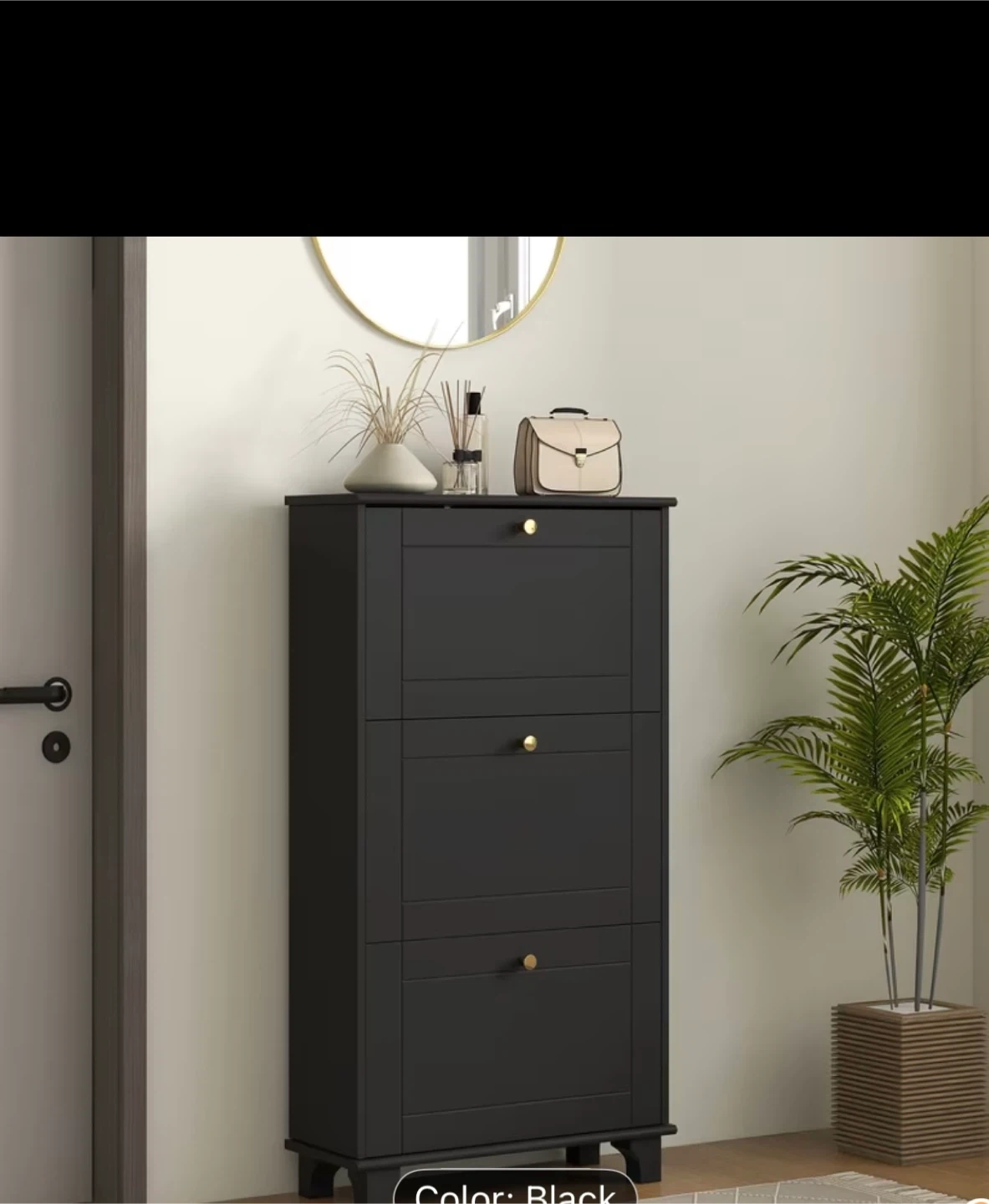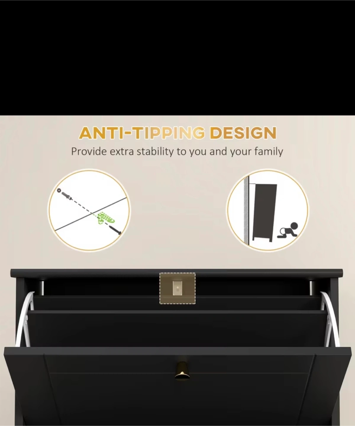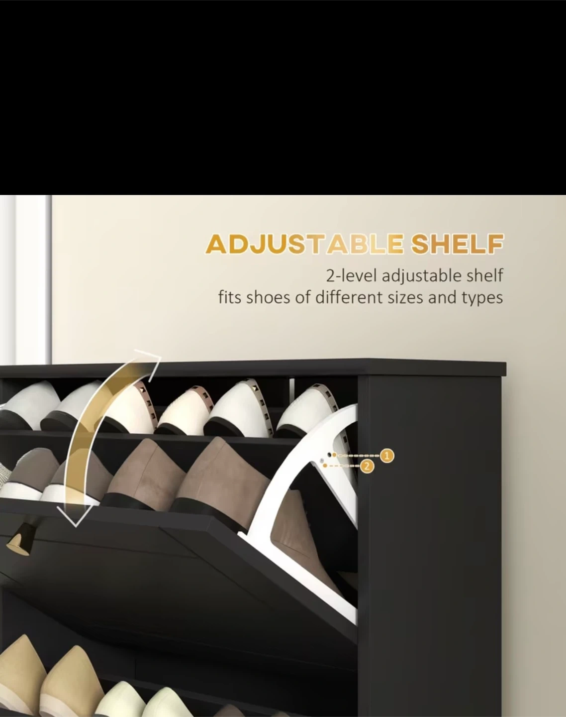 This black shoe cabinet is perfect for keeping your entryway tidy! It features adjustable shelves to accommodate different shoe sizes and types, even ankle boots and high heels. The interior adjustable divider is removable for extra flexibility.