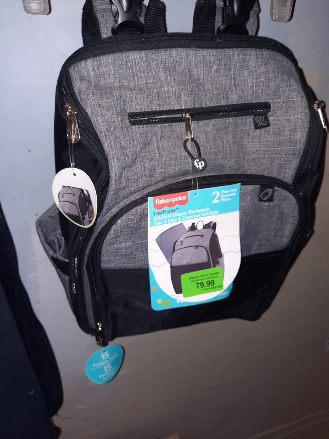 Selling a Fisher-Price Kaden diaper backpack! It features 15 pockets to keep everything organized. Originally bought for $79.99.