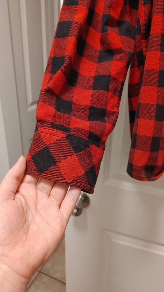 Cozy up in this Canadiana flannel shirt! It features a classic red and black plaid pattern. It's an XL size, perfect for layering or wearing on its own