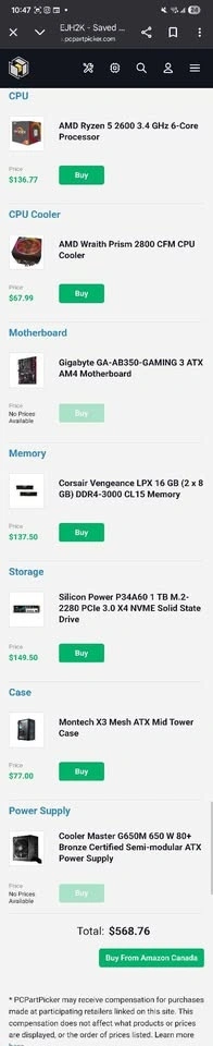 Parts list doesn't include the gpu (200$),mobo (50$) or power supply(50$), all three not accounted for is 300