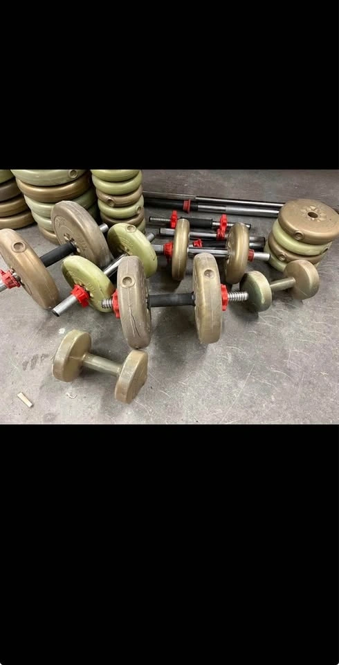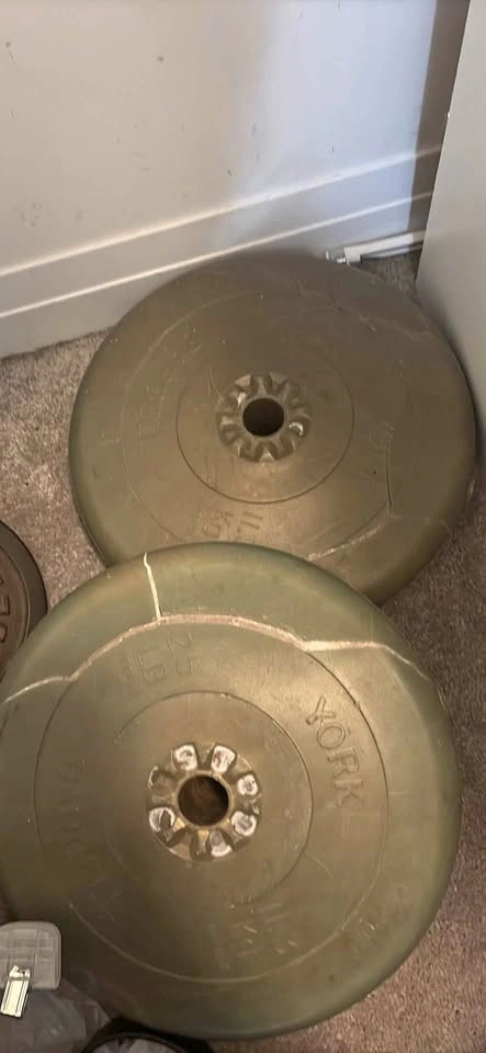 Concrete dumbbells, yes they have cracks in them (but they work perfectly fine) and because of that I’m selling them at $1 per pound as opposed to the usual $2 per pound.