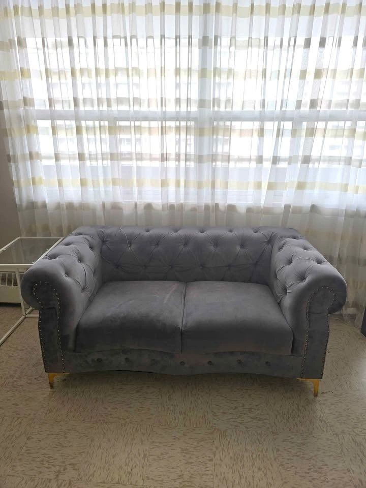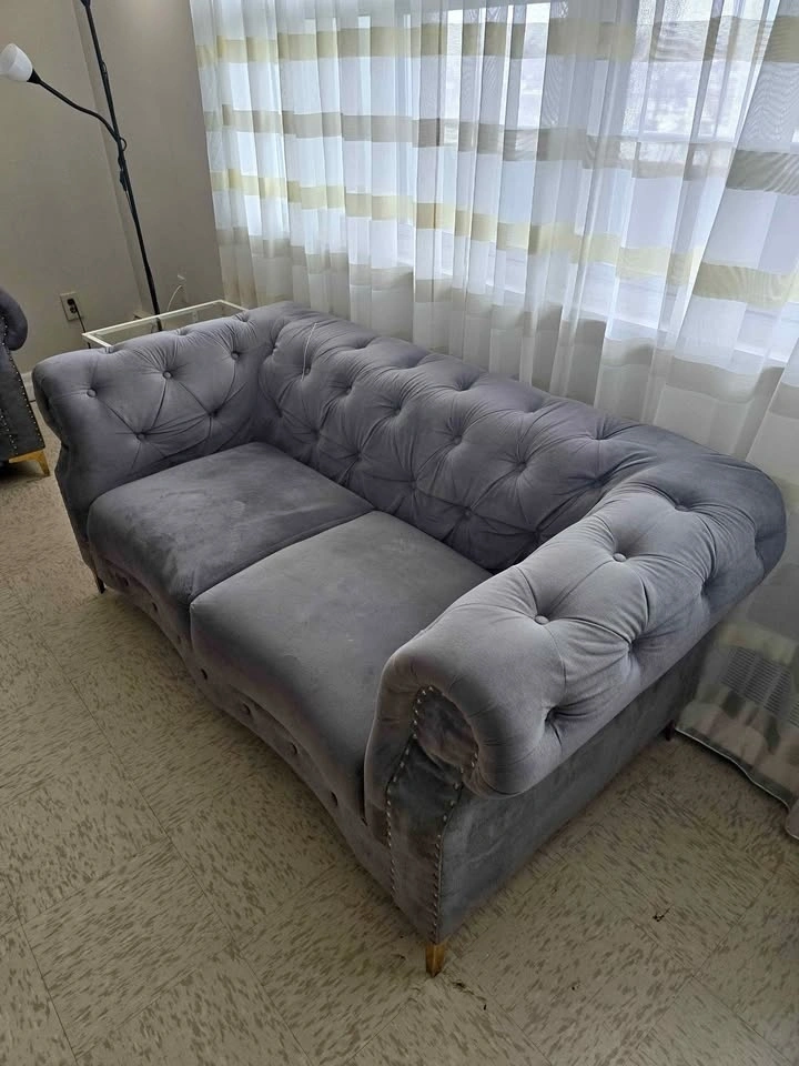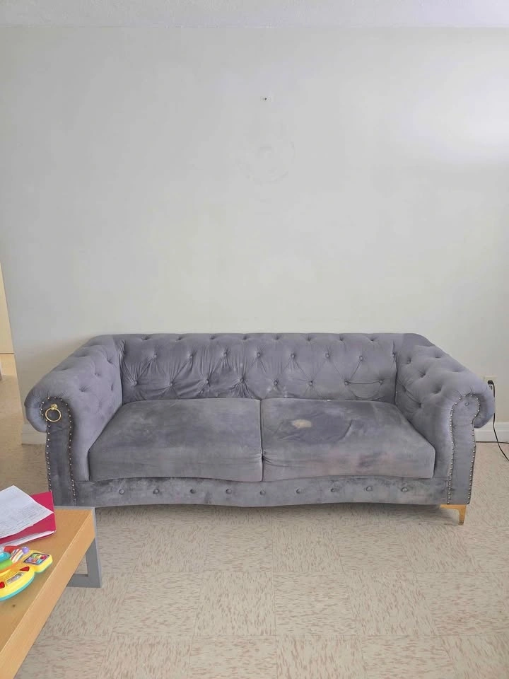 For sale: 3-seat sofa and loveseat. The loveseat is in good condition (see photos). The sofa has a noticeable bleach stain that has discolored the fabric. Interested buyers can purchase one or both items.