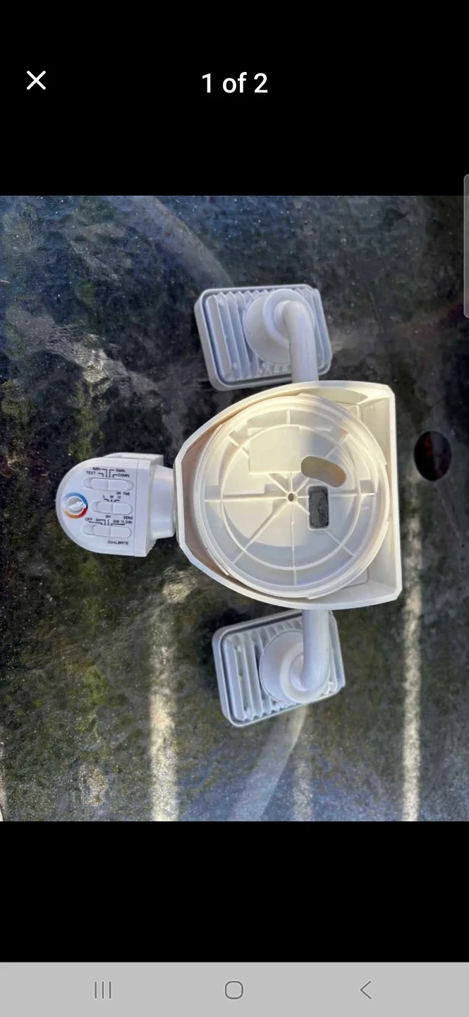 This is an LED outdoor security flood light. It has three adjustable heads for wide coverage. Great for enhancing your home's security!