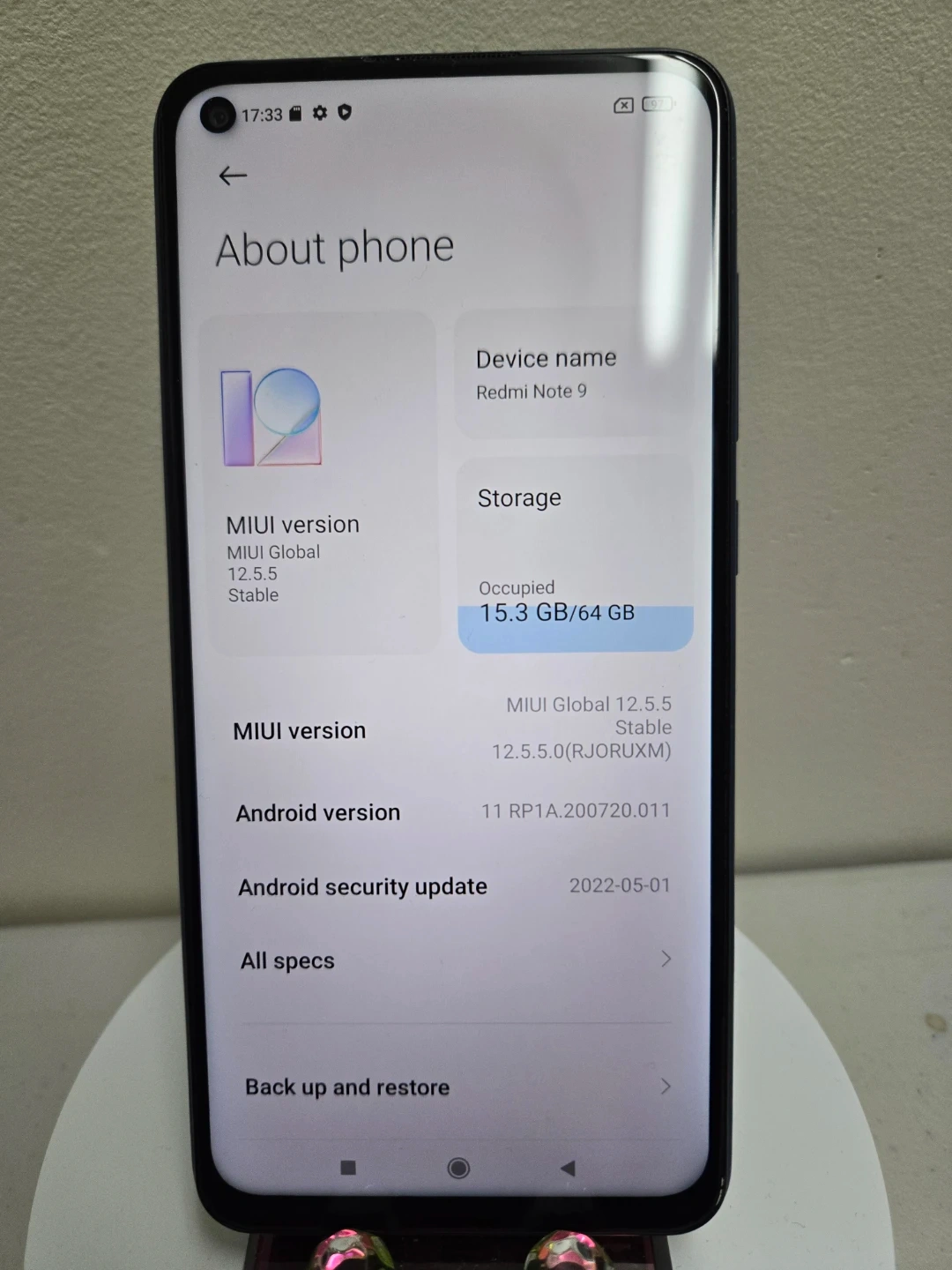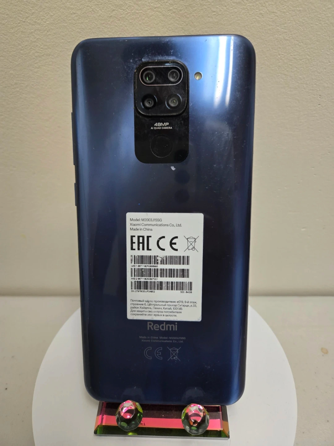 Selling a Redmi Note 9. It has 64GB of storage and is in good condition. The device name is Redmi Note 9. It has a 48MP AI camera.