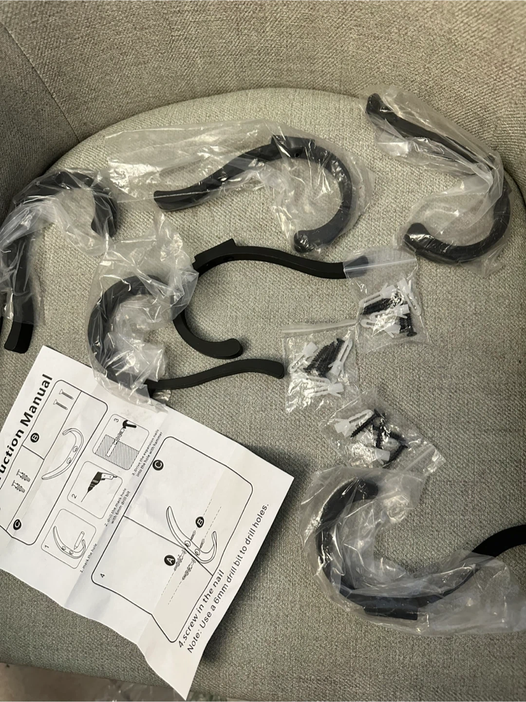 Selling a set of new, black wall hooks! They're still in their original packaging with all the necessary hardware and instructions included. Perfect for adding some extra storage to your home (for coats or backpacks)