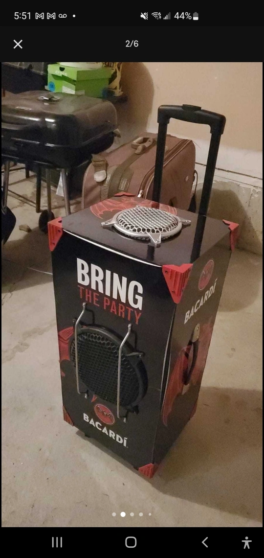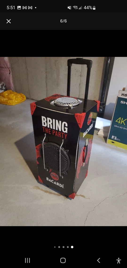 Selling a Bacardi 'Bring the Party' speaker. It's black with red accents and the Bacardi logo. Great for parties and gatherings