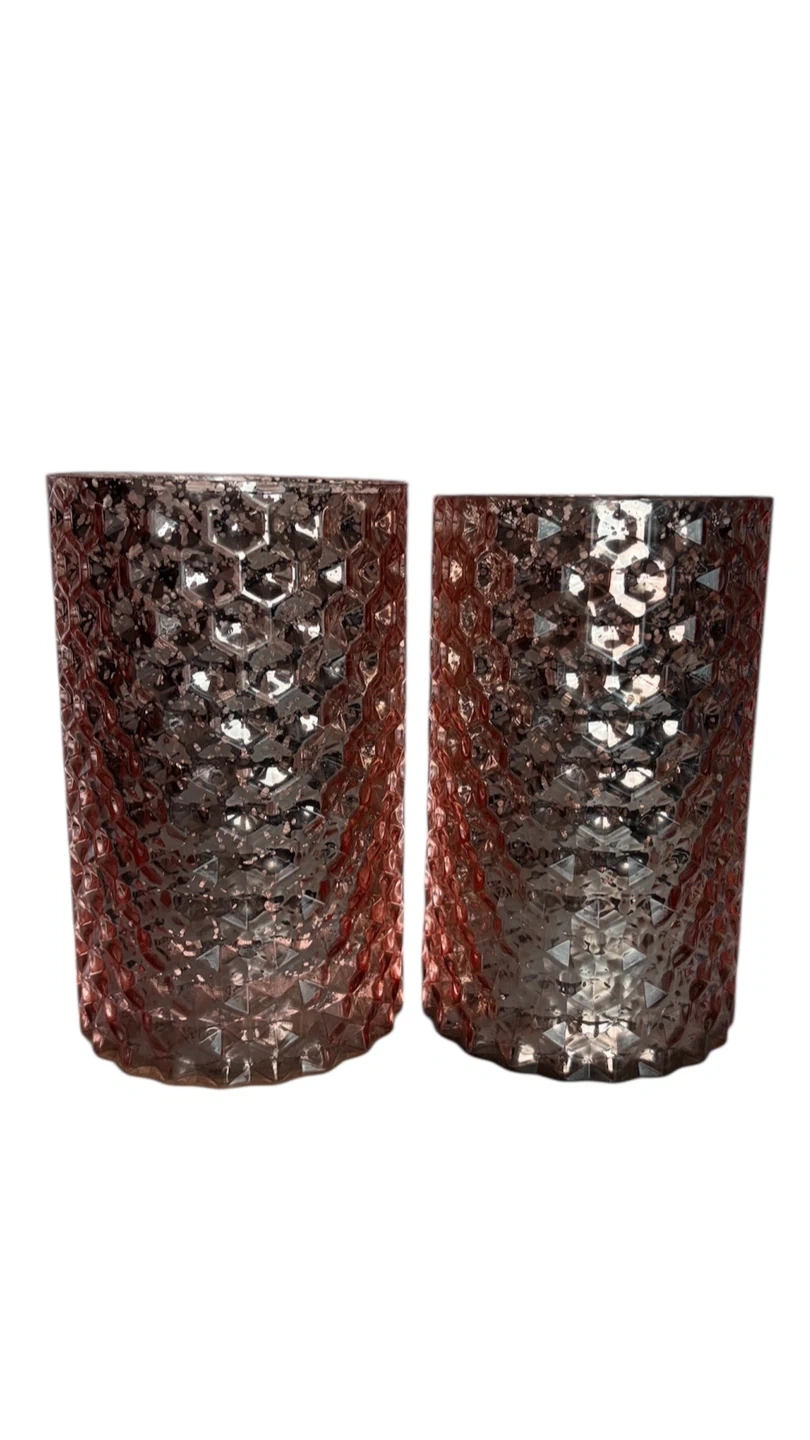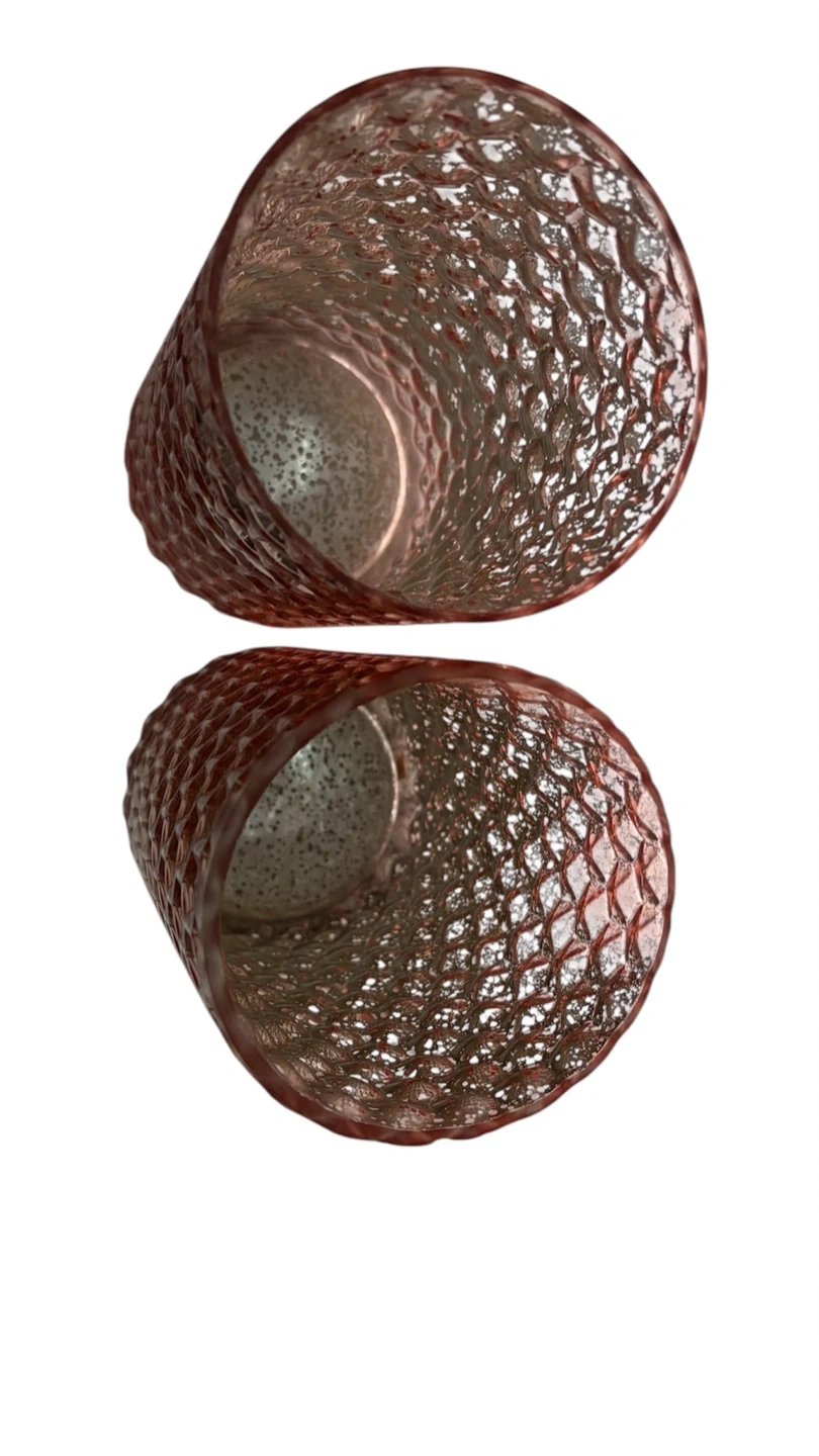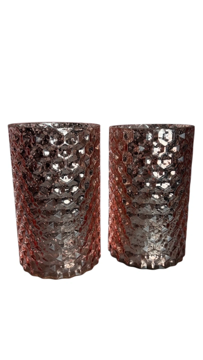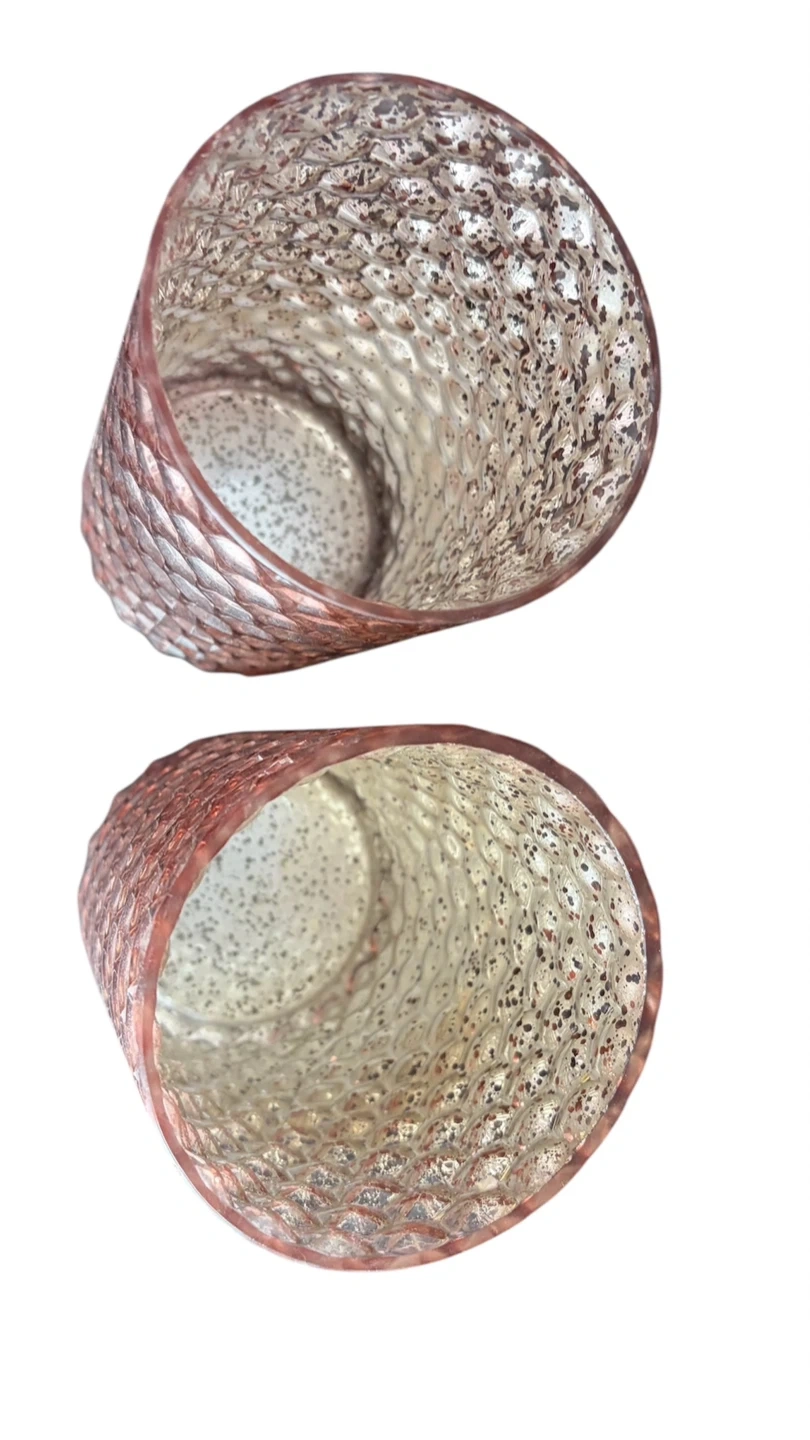 Set of two textured pink glass vases/candle holders