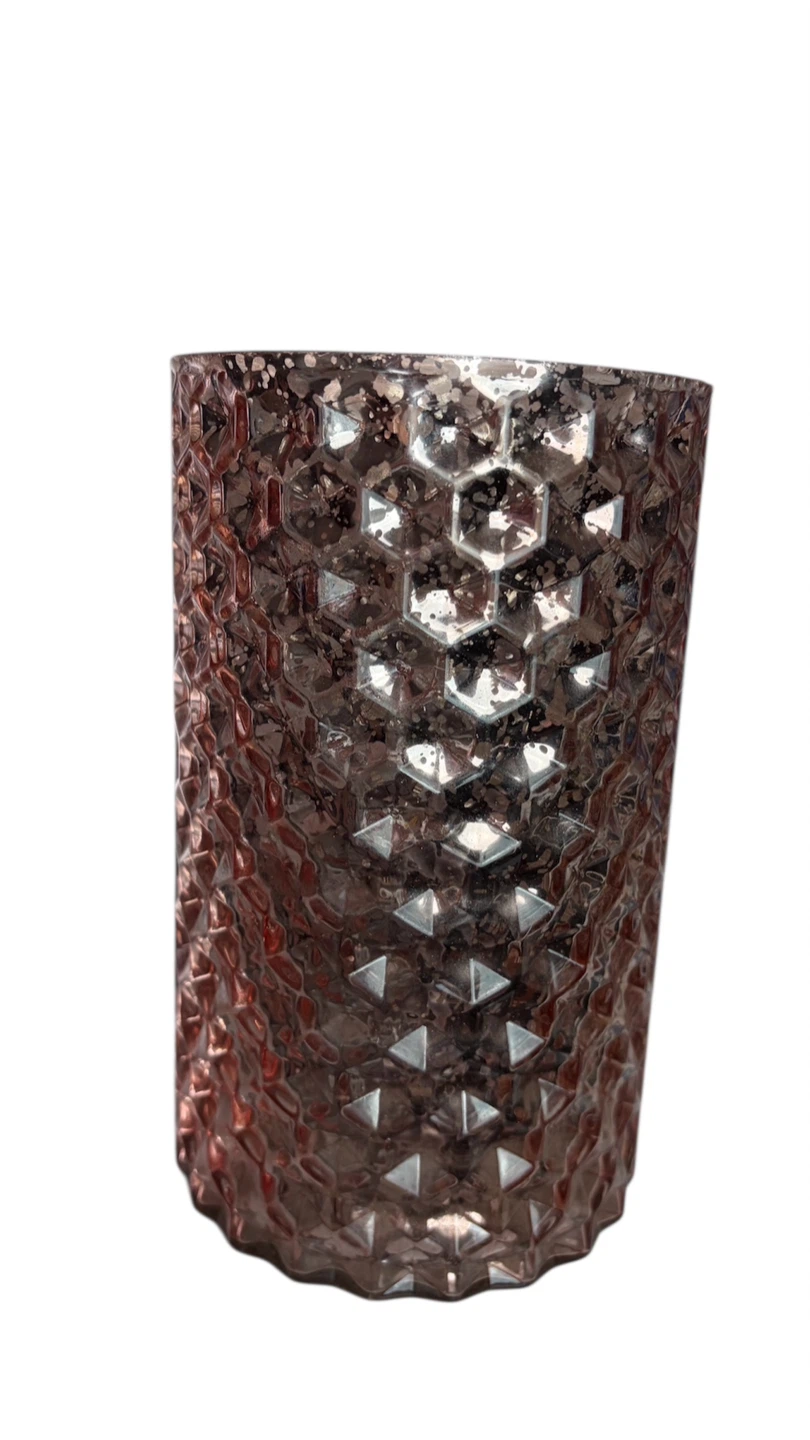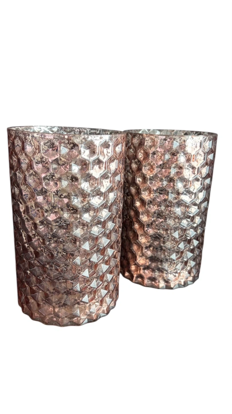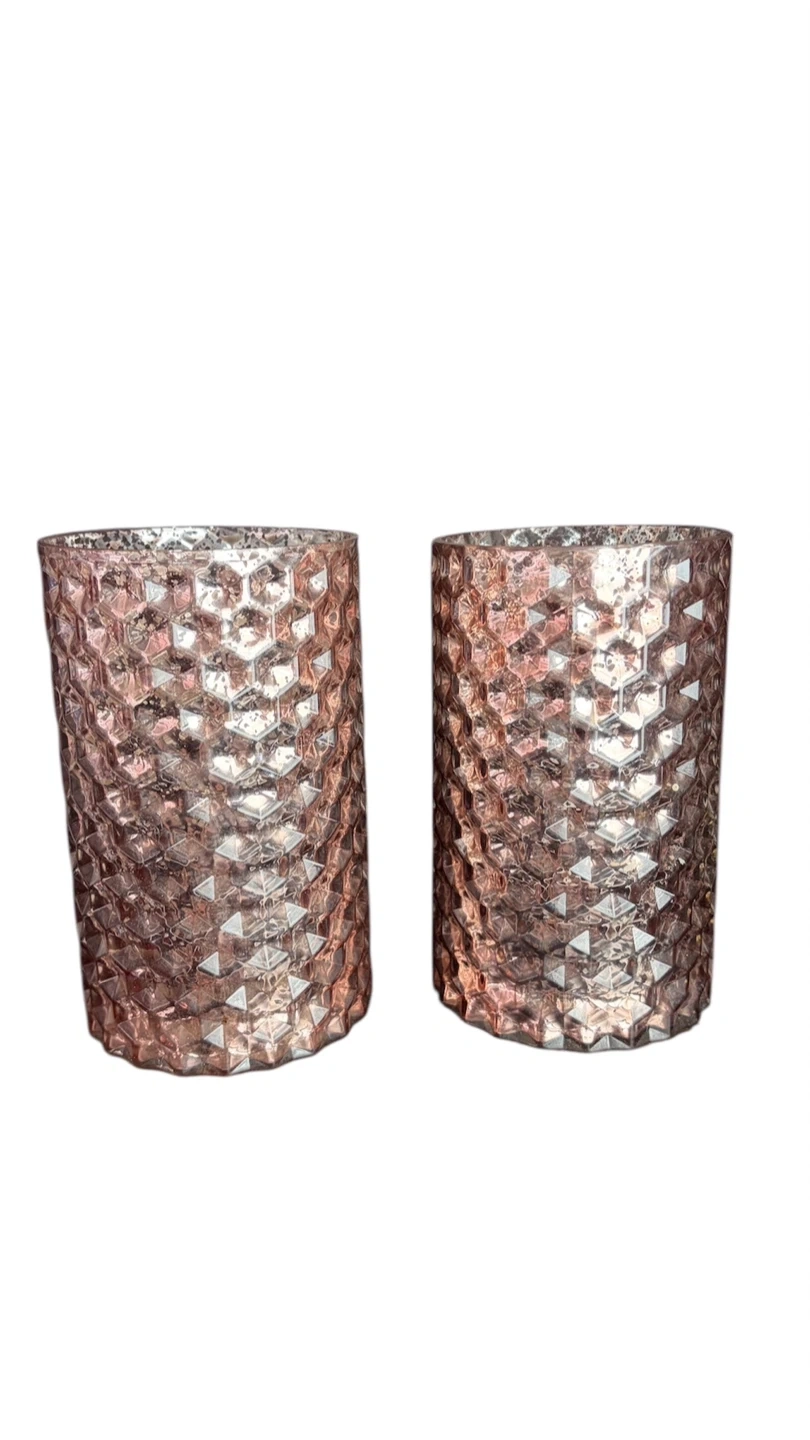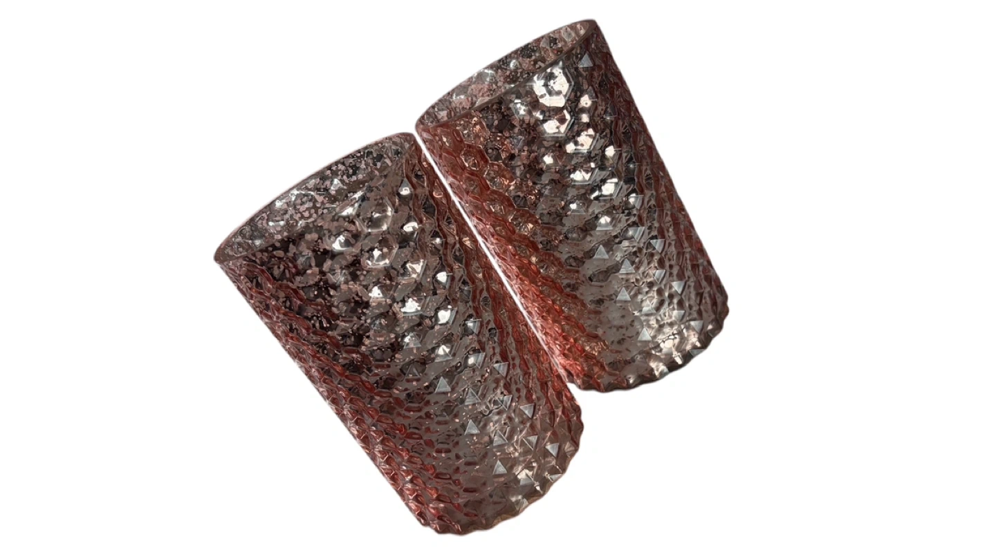 Set of two textured pink glass vases/candle holders
