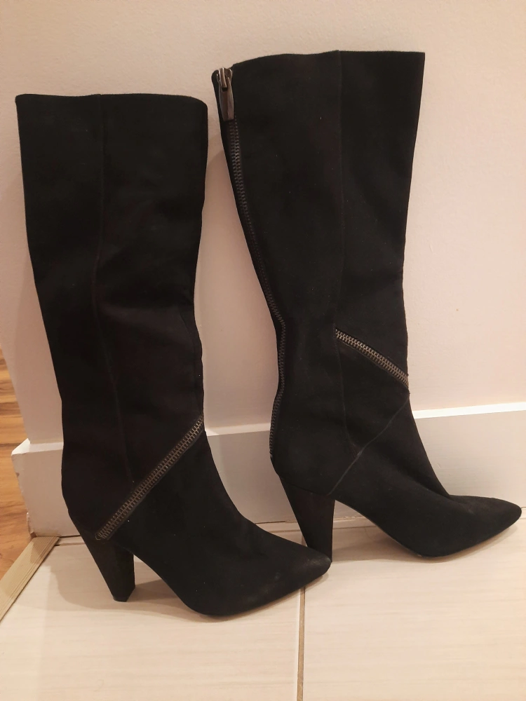 Beautiful black suede high heel boots in good condition, only worn a couple times.