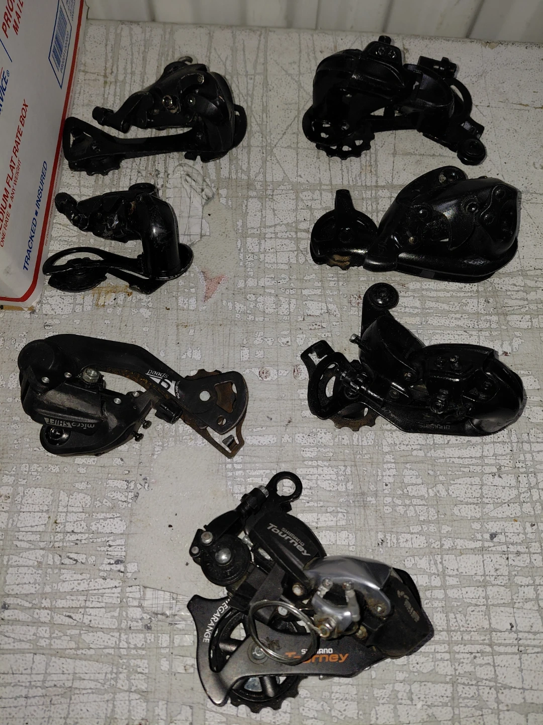 Selling a Shimano Tourney rear derailleur. It appears to be in used condition. Selling deraileurs starting at $10 serious customers only thanks.