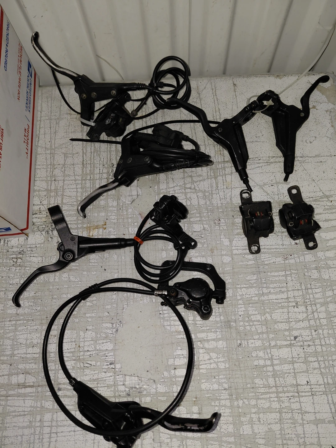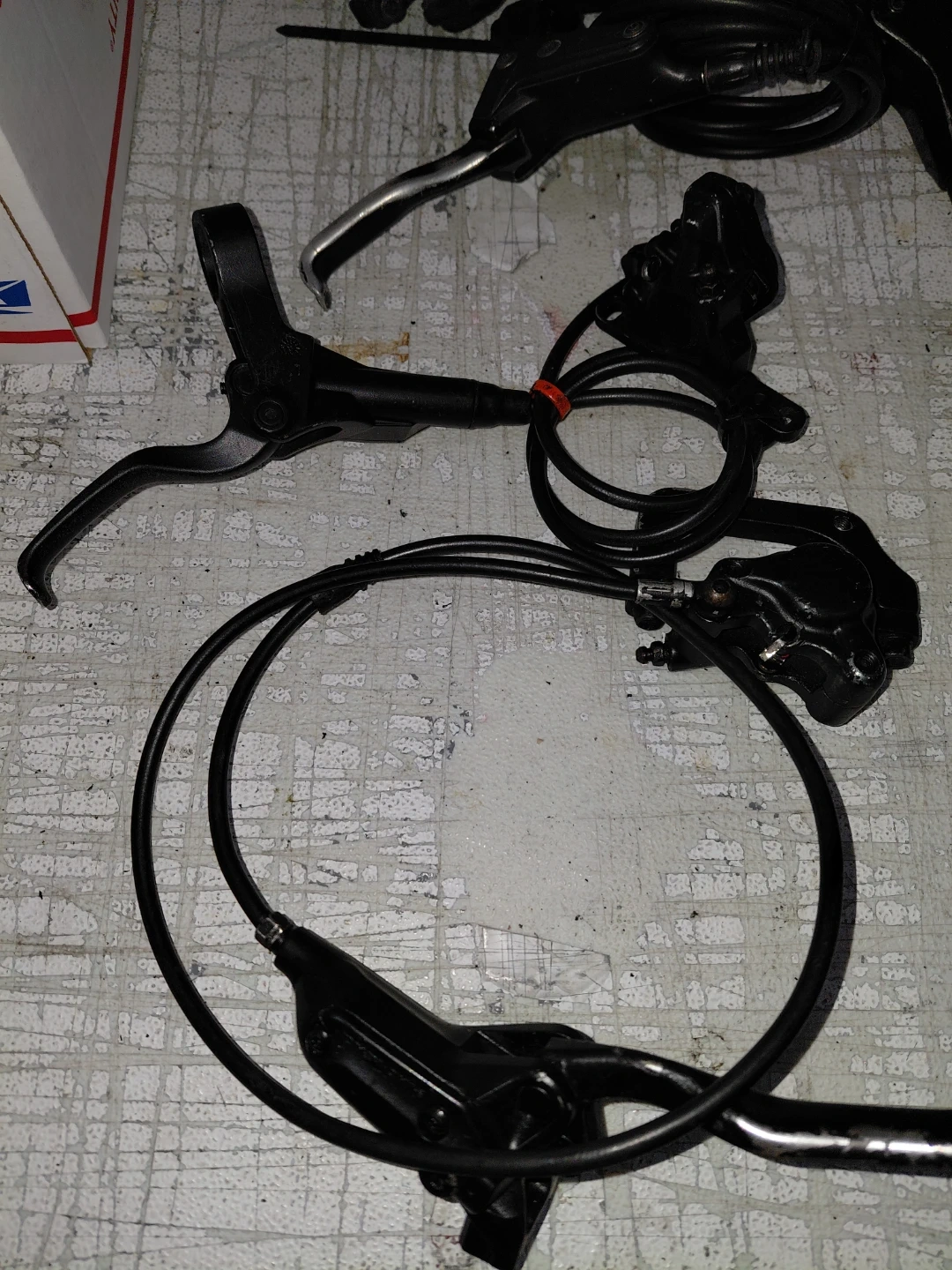 Selling a Tektro hydraulic disc brake set. It appears to be in good condition and comes with all the components you see in the pictures. Great for upgrading your bike. I am slong both hydrolic and non hydrolic accepting offers. !