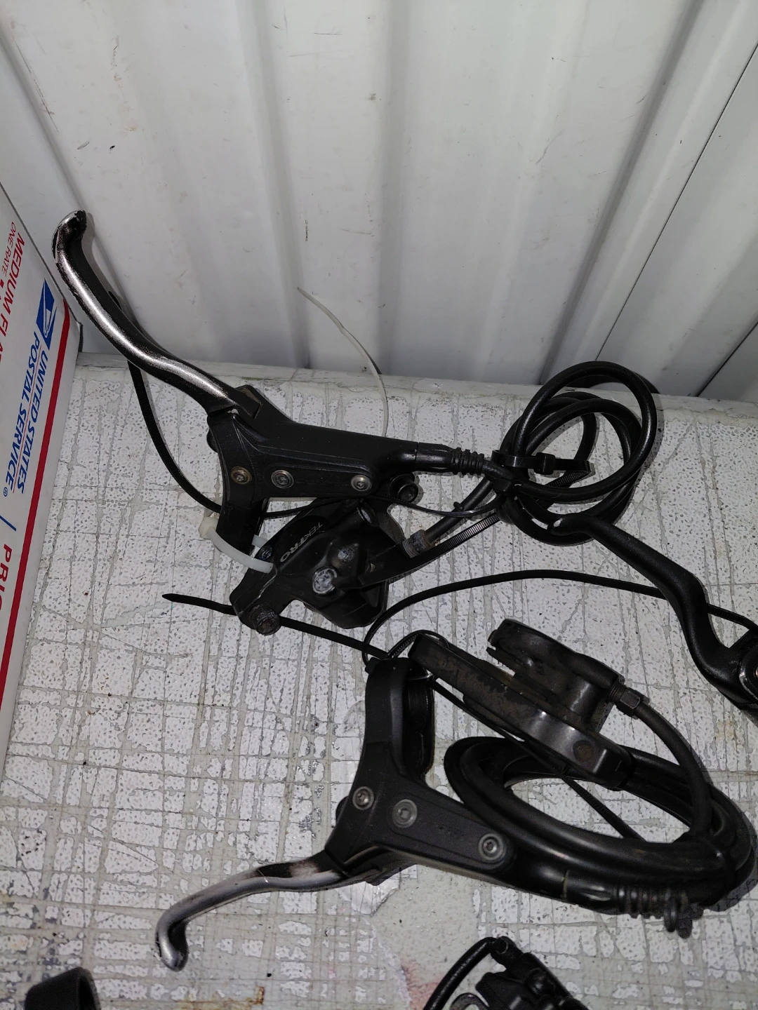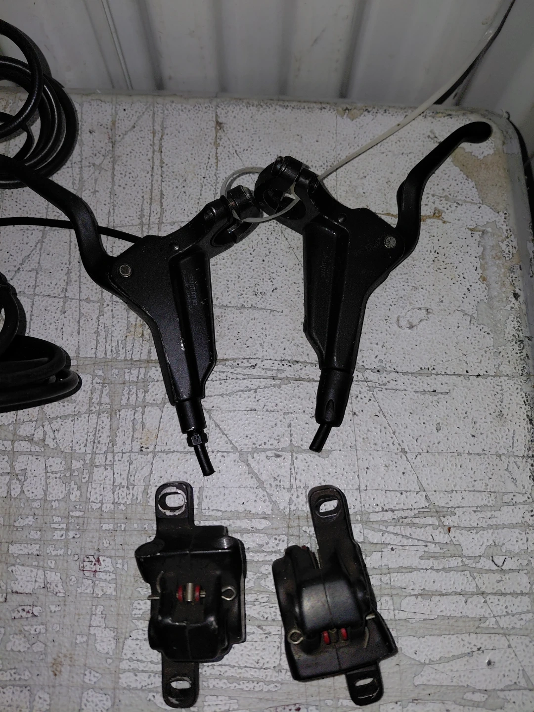Selling a Tektro hydraulic disc brake set. It appears to be in good condition and comes with all the components you see in the pictures. Great for upgrading your bike. I am slong both hydrolic and non hydrolic accepting offers. !
