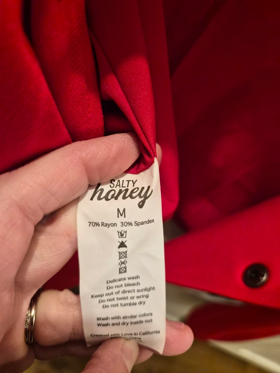 Selling a Salty Honey varsity jacket in red! It's in great condition and ready for a new owner. The jacket is a size medium and made of 70% rayon and 30% spandex. Perfect for adding a pop of colour to your wardrobe! New