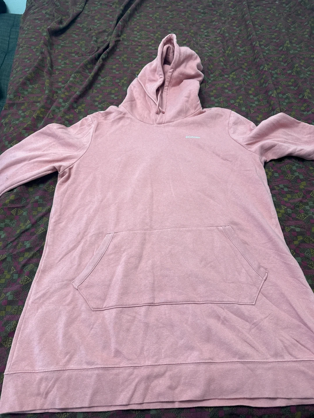 Selling a comfy Columbia hoodie in a lovely pink shade! It's a size 1X and features the classic Columbia logo. Perfect for layering or just lounging around