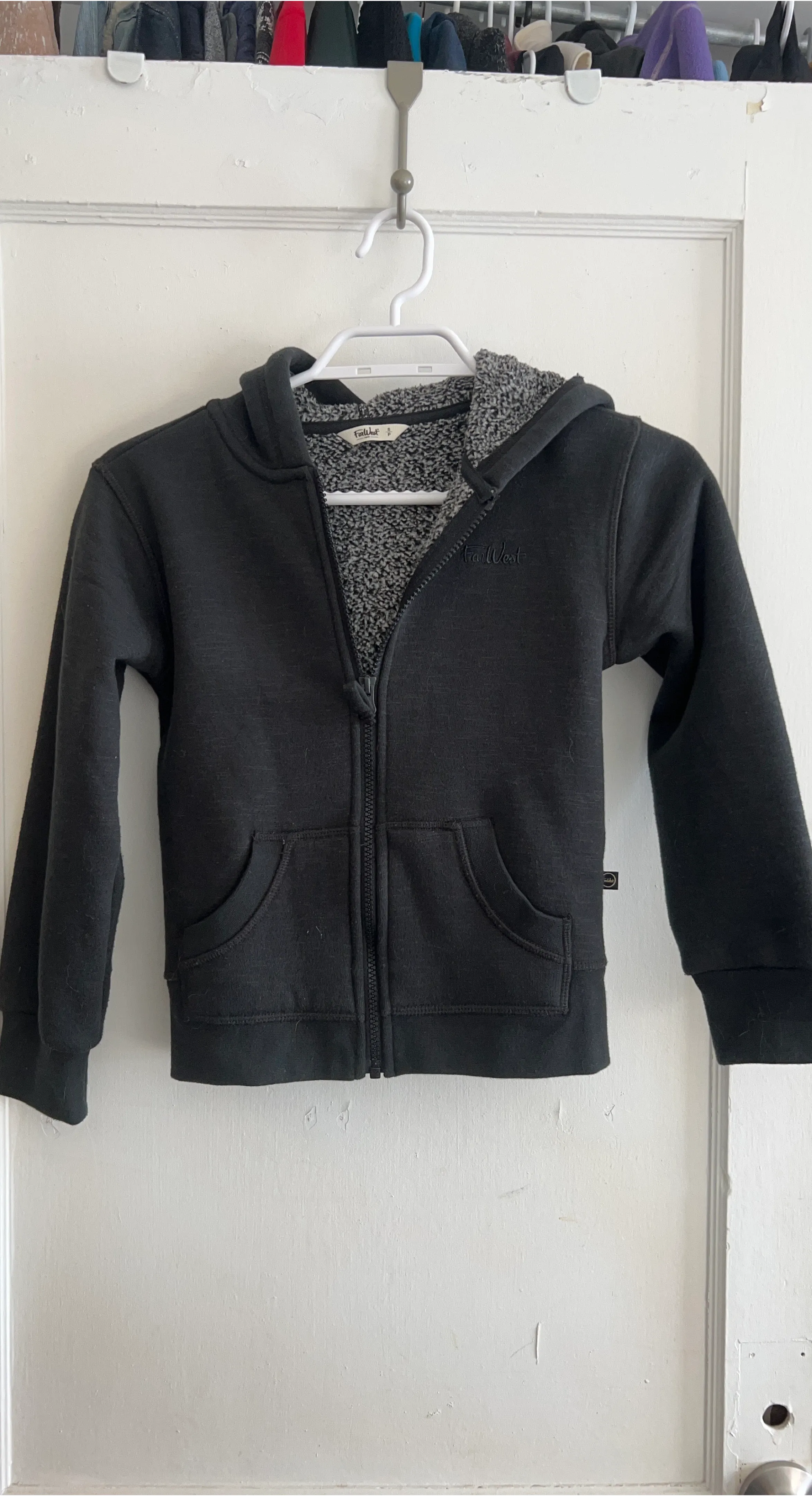 A cozy Hatley Kids zip-up hoodie in black! It features a soft, textured lining and a comfortable fit for your little one. Perfect for layering on cooler days